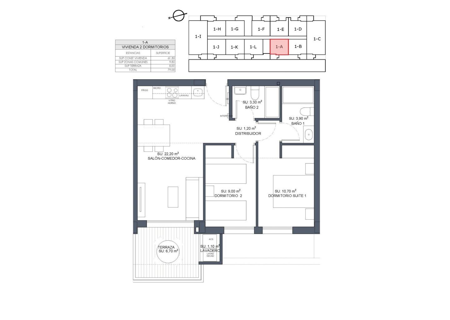 Viviendas modernas de nueva construcción con cocina americana y salón, 2 y 3 dormitorios, 2 baños, terrazas.