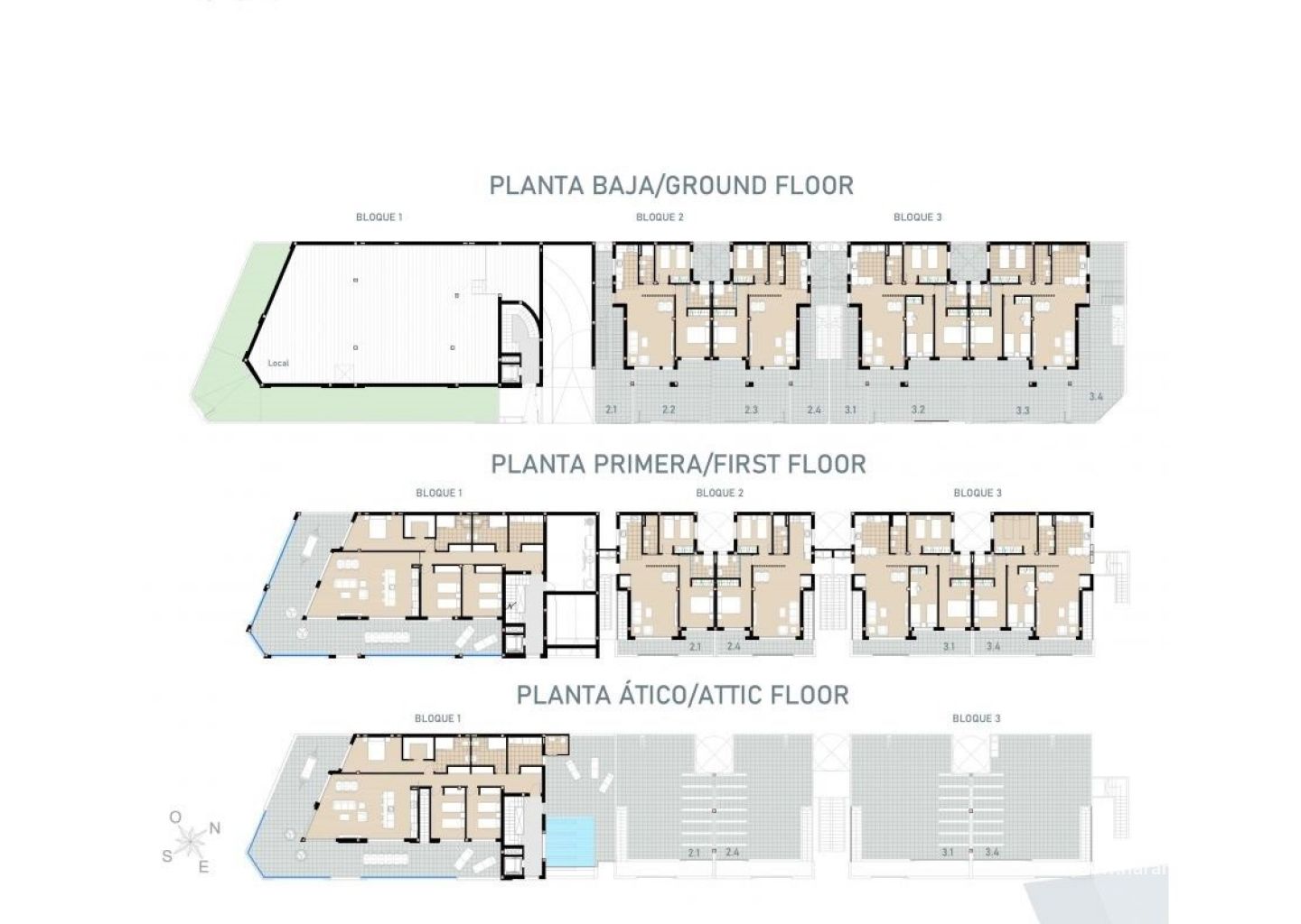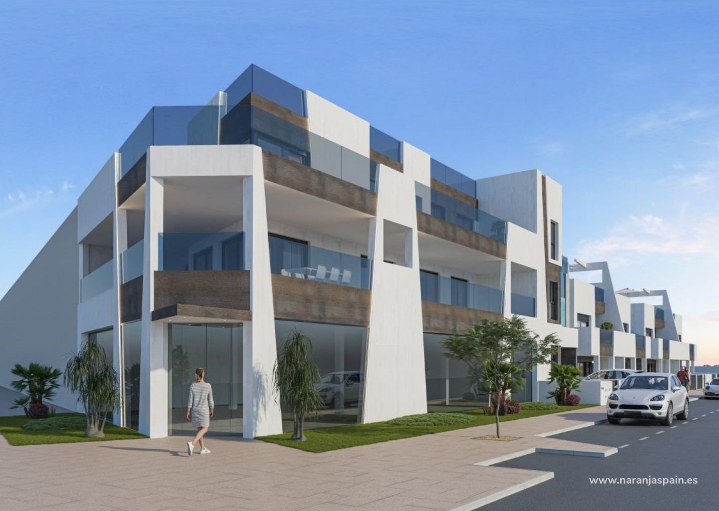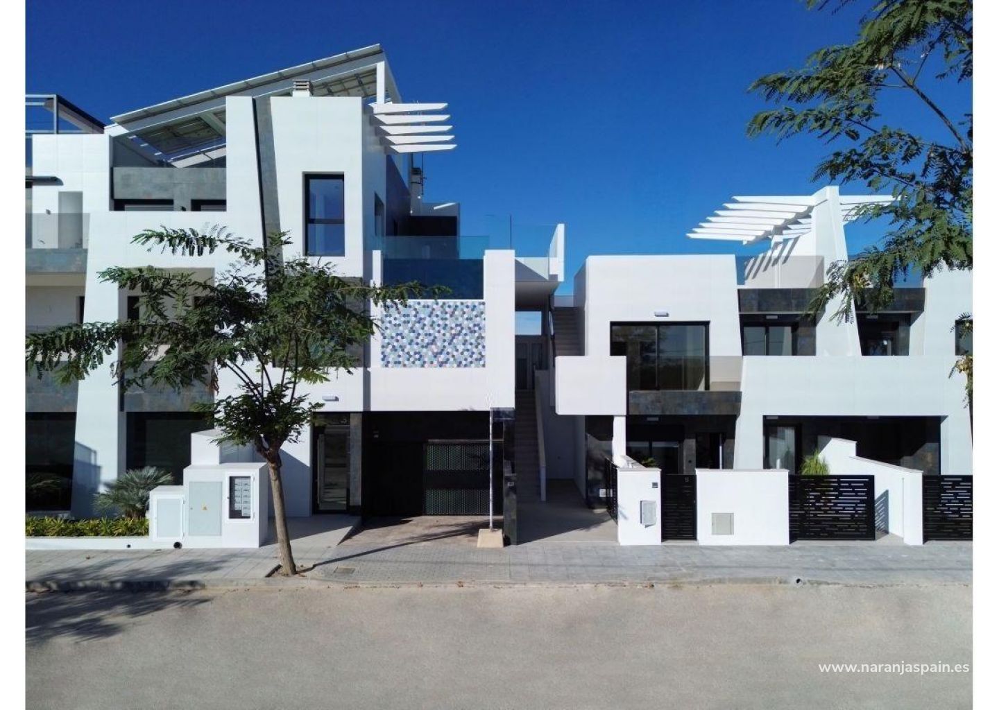 Complejo residencial de nueva construcción de estilo moderno compuesto por 8 bungalows, apartamentos y áticos de 2 y 3 dormitorios, con una amplia zona de jardín o solarium.