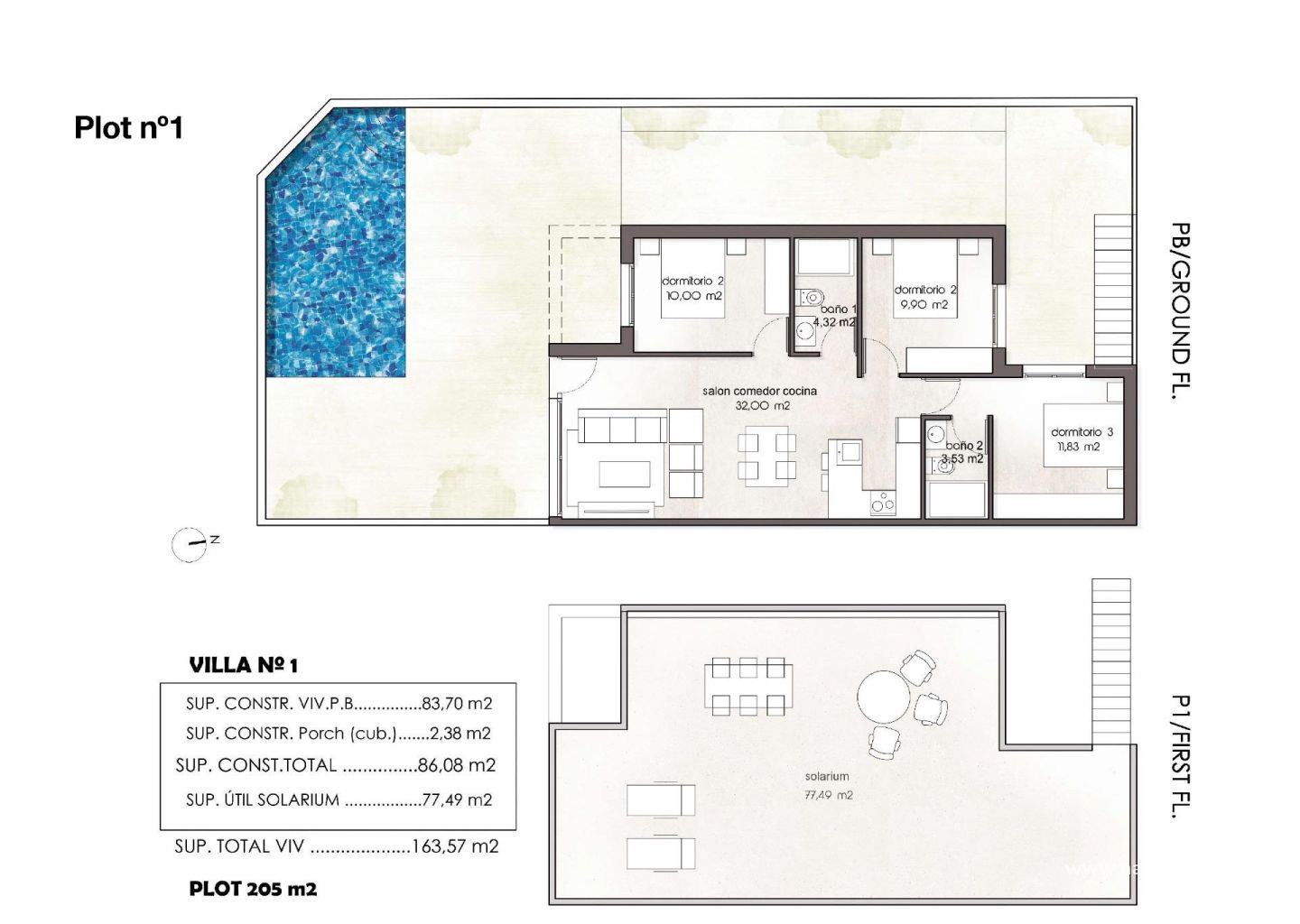 Pareados construidas en 1 planta y dispone de solarium privado, 3 dormitorios, 2 baños, cocina americana con el salón, jardín con plaza de aparcamiento.