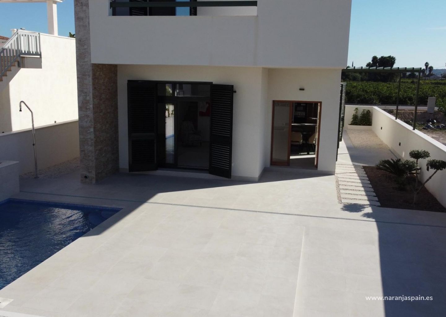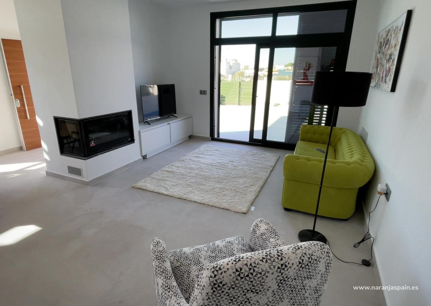 VILLA DE EXCELENTE UBICACION COSTA Y GOLF Villa independiente y semi adosada en el típico pueblo español de Daya Nueva. Salón/comedor con chimenea y cocina abierta, 3 dormitorios y 3 baños, varias terrazas, piscina privada y piscina comunitaria. Daya Nueva es la combinación perfecta entre un estilo de vida rural relajante y confortable y las vibrantes zonas costeras de la Costa Blanca. Cerca de todos los servicios, estas villas se construyen en un tí­pico pueblo español de la Vega Baja, al sur de Alicante, ofreciendo sol y tranquilidad durante todo el año. Con su fácil acceso a la A37 que conecta Alicante con Cartagena y su proximidad a todos los pueblos costeros, Daya Nueva se ha convertido en un lugar de residencia perfecto tanto para disfrutar de sus vacaciones como para vivir en él.  Distancia a la playa 13 km, distancia al aeropuerto 40 km, distancia al golf 8 km.