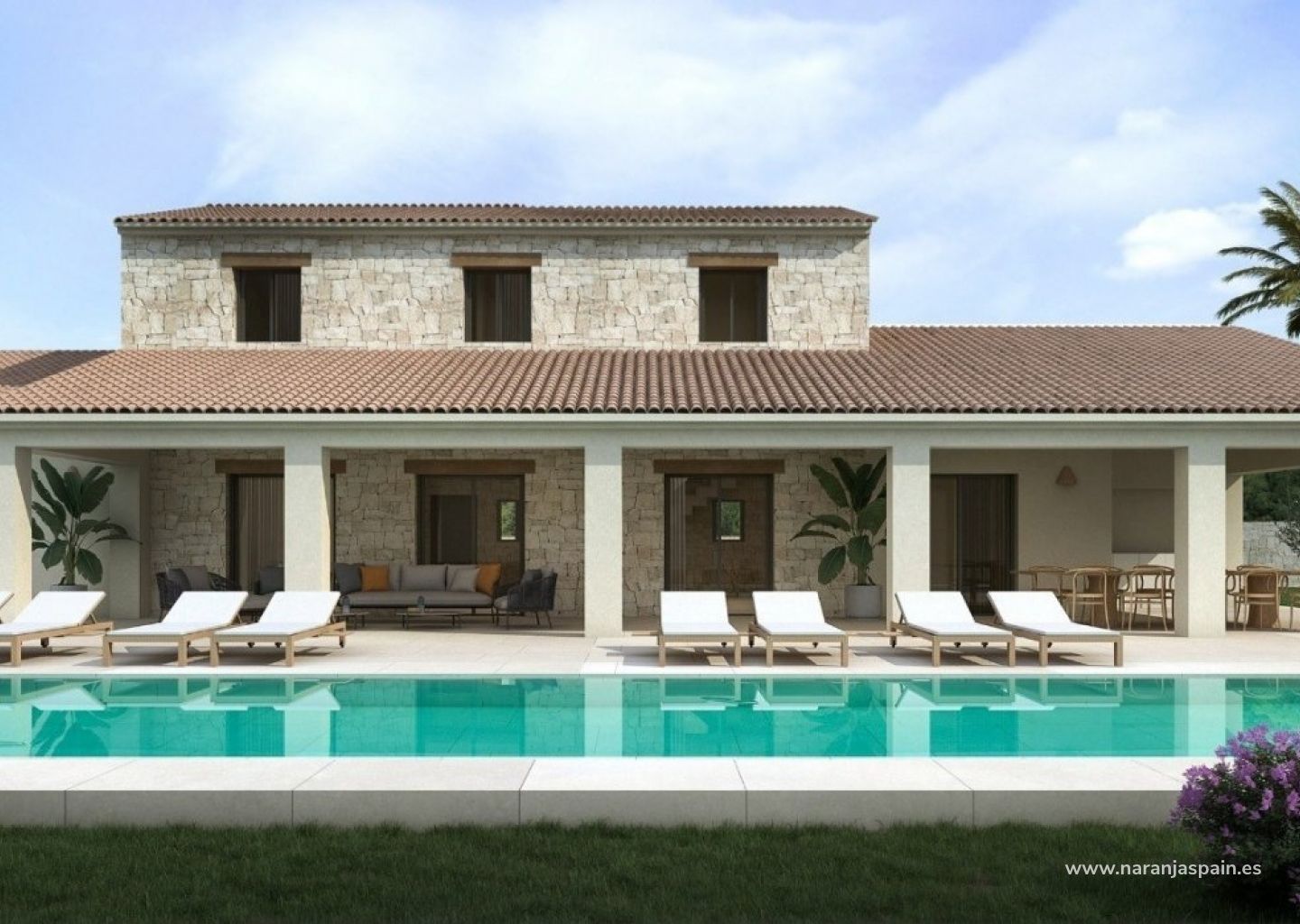 Villa de nueva construcción en Moraira con piscina privada y vistas al mar.