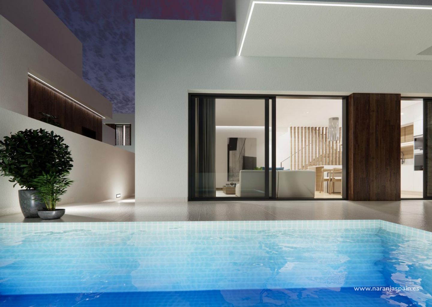 Esta moderna urbanización de Dolores cuenta con chalets adosados de nueva construcción. Diseñadas con un estilo contemporáneo y pensando en la comodidad, cada casa se distribuye en dos plantas, con 3 dormitorios y 3 baños. La cocina abierta conecta perfectamente con el salón, que conduce directamente a una terraza privada y al jardín. Además, cada vivienda cuenta con su propia piscina privada y plaza de aparcamiento.
