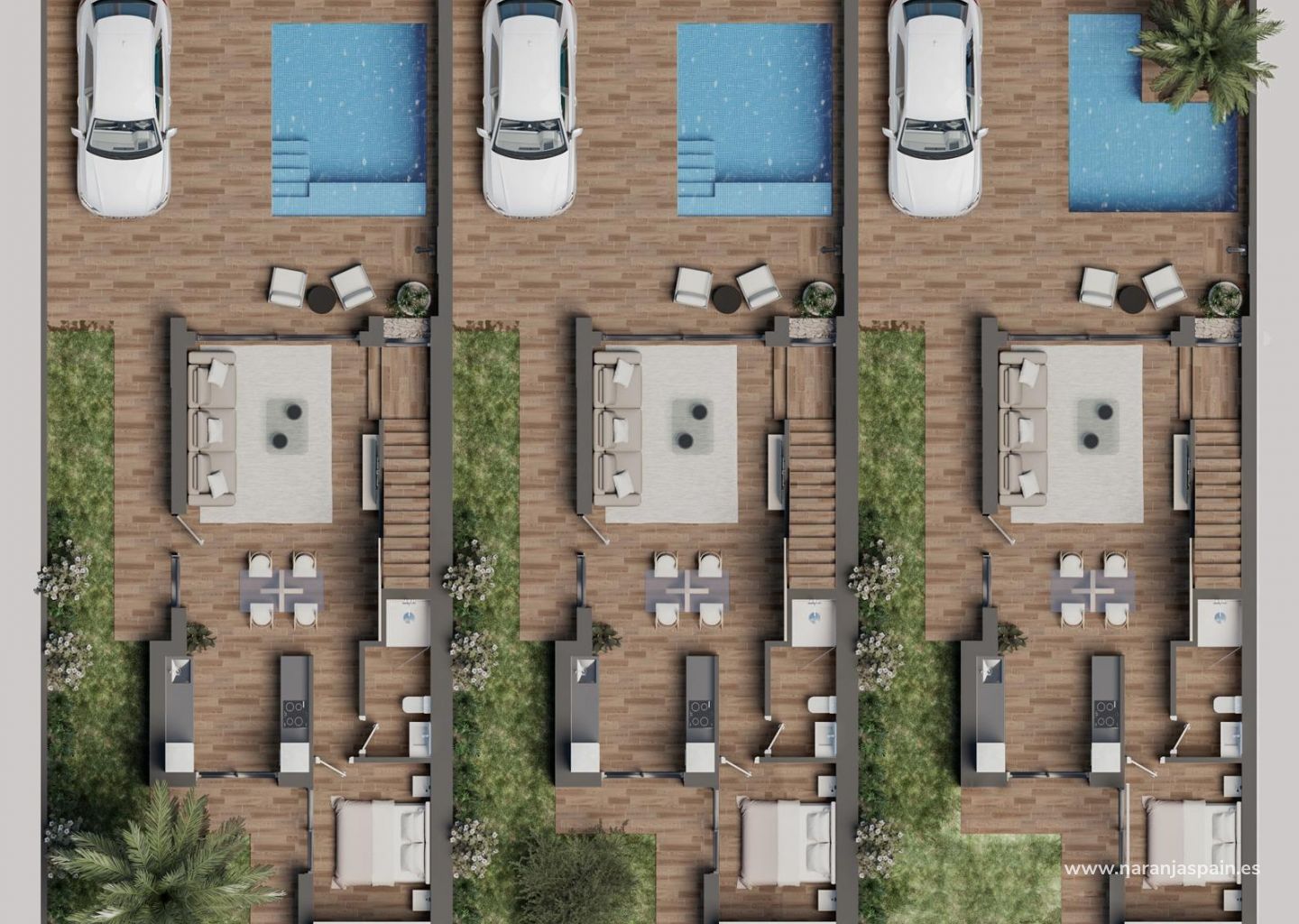 Descubra el epítome de la vida de lujo en San Pedro del Pinatar con estas excepcionales villas de nueva construcción. Cada villa ha sido cuidadosamente diseñada con una meticulosa atención al detalle, ofreciendo interiores espaciosos e iluminados por el sol que combinan estilo y confort. Estas villas cuentan con una sala de estar de planta abierta, comedor y cocina, creando un flujo continuo en todo el espacio de vida principal. Con 3 dormitorios, incluyendo una suite principal con vestidor y baño privado, estas casas son perfectas para aquellos que buscan elegancia y funcionalidad.