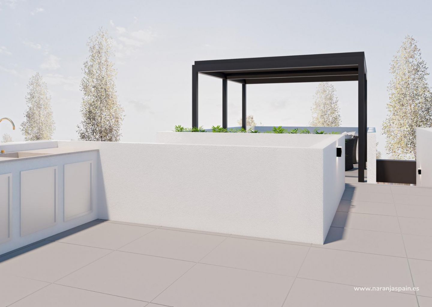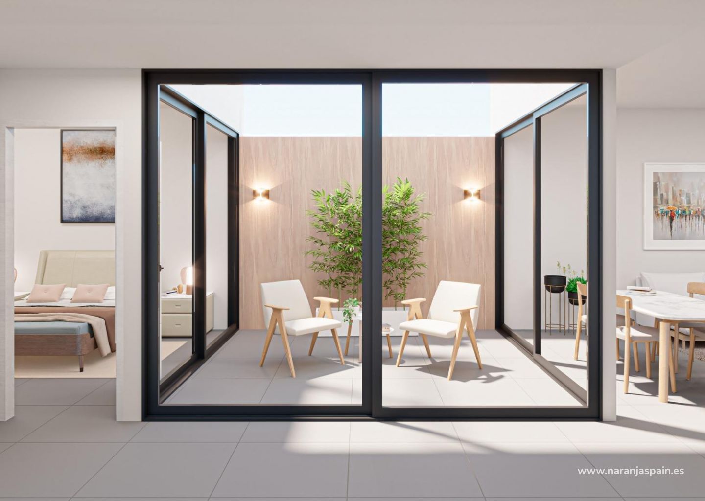 Cada adosado cuenta con tres dormitorios, dos baños, una piscina privada, una amplia terraza, un patio interior, un solarium en la azotea y aparcamiento privado. Las viviendas están equipadas con cocinas y baños modernos, preinstalación de aire acondicionado y acabados de alta calidad. Otras características destacadas son: