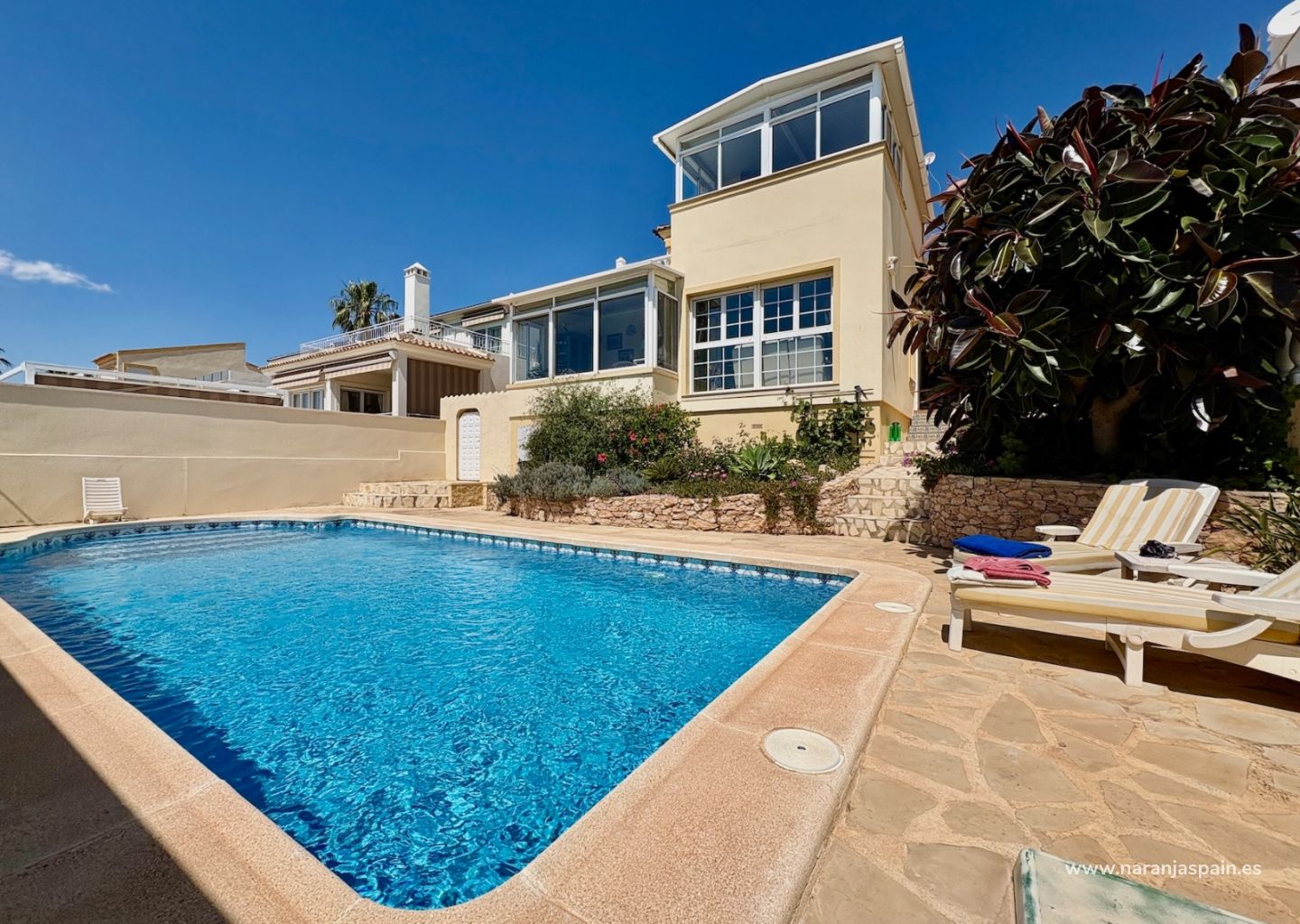 Destacan sus generosos espacios exteriores: una terraza principal, ideal para disfrutar del clima templado de la zona; una terraza acristalada que extiende el salón hacia el exterior; y un amplio hall de entrada que da la bienvenida con amplitud y elegancia.