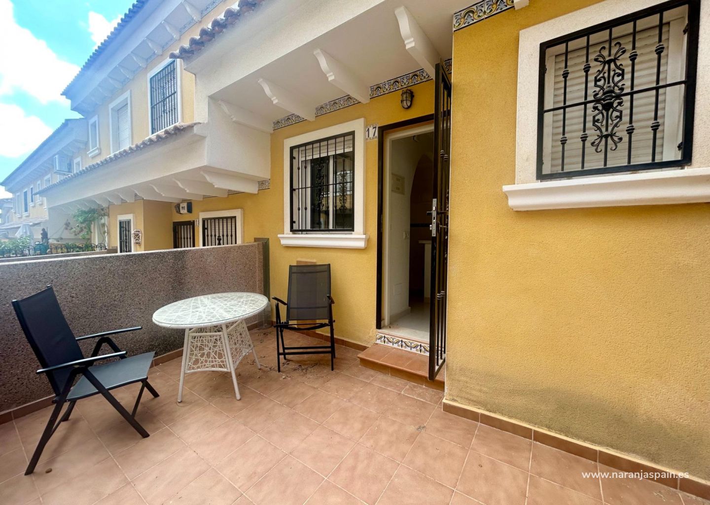 Tríplex adosado en venta en Urbanización Montemar, junto a La Finca Golf en Algorfa (Costa Blanca) ~Descubre este bonito adosado tipo tríplex en venta en Algorfa, situado en la exclusiva urbanización Montemar, a pocos metros del prestigioso La Finca Golf Resort. Una ubicación privilegiada en plena Costa Blanca, ideal tanto para vacaciones como para vivir todo el año.~La propiedad se distribuye en varias plantas:~Planta baja: espaciosa cochera cerrada con acceso interior a la vivienda.~Primera planta: luminoso salón-comedor, cocina americana, baño y dos terrazas, una de ellas con agradables vistas a la zona verde.~Segunda planta: dos dormitorios, un baño completo y otra terraza con vistas despejadas.~Última planta: amplio y soleado solárium privado, perfecto para relajarse y disfrutar del clima mediterráneo con preciosas vistas al entorno natural.~El residencial cuenta con una piscina comunitaria y está ubicado en una zona tranquila, a poca distancia de todos los servicios, comercios y a tan solo unos minutos en coche de las playas de Guardamar del Segura y Torrevieja.~Este tríplex en venta en Montemar – Algorfa combina comodidad, buena ubicación y un entorno inmejorable para disfrutar del estilo de vida mediterráneo.