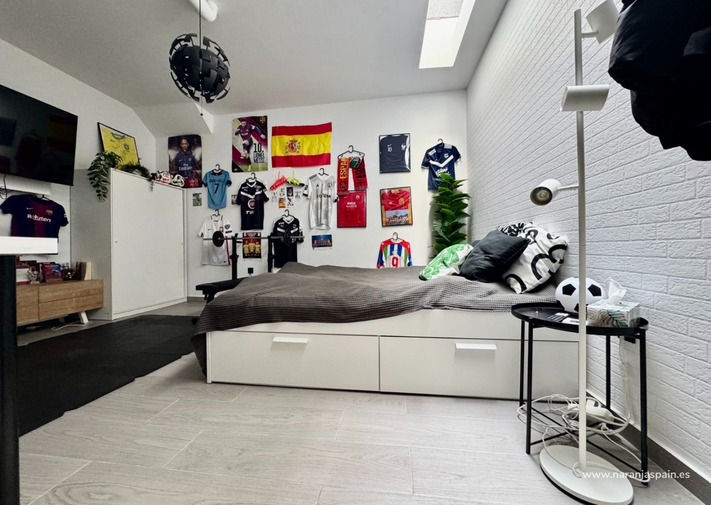Sótano: amplio dormitorio con abundante luz natural y garaje privado con capacidad para dos vehículos.