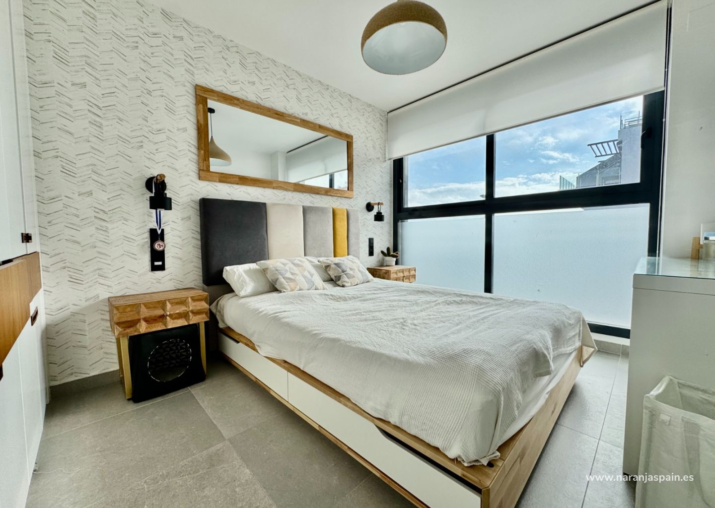 Segunda planta: dormitorio principal con acceso directo a una terraza privada.
