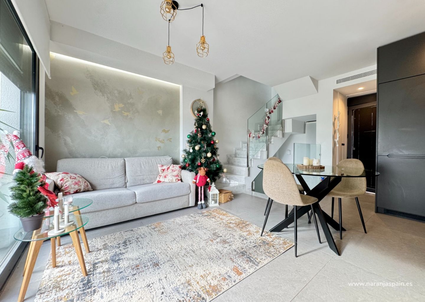 Planta baja: salón espacioso y luminoso, aseo y zona de lavandería/trastero perfectamente integrada.