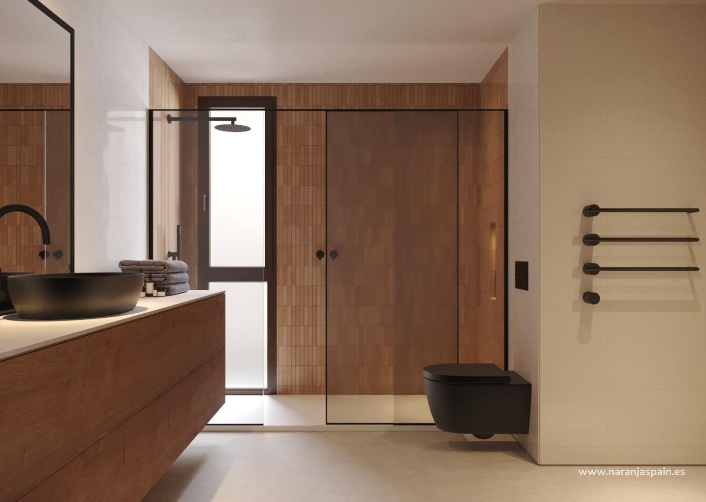 En el interior, las villas ofrecen una luminosa y elegante sala de estar y comedor de planta abierta con una moderna cocina integrada y una península. Las grandes puertas correderas con rieles empotrados crean una transición perfecta entre los espacios interiores y exteriores, proporcionando acceso directo al jardín, la piscina y la zona de aparcamiento. Esta cuidada distribución potencia la luz natural y crea un ambiente acogedor para la vida cotidiana y el entretenimiento.