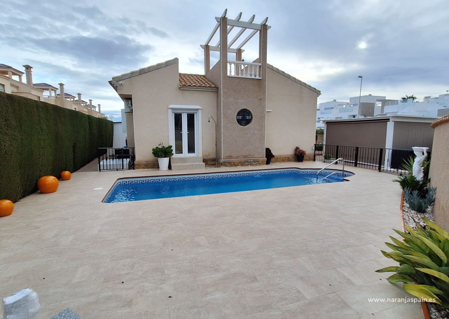 Le presentamos esta magnífica villa independiente de una sola planta, ubicada en una parcela de 425 m², con una superficie construida de 92 m², orientada al sur, lo que garantiza luz natural durante todo el día.