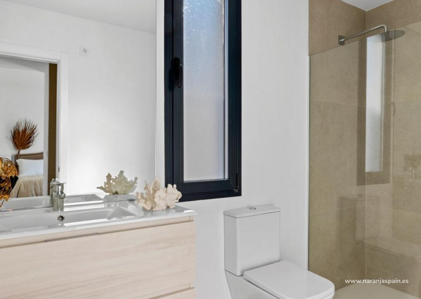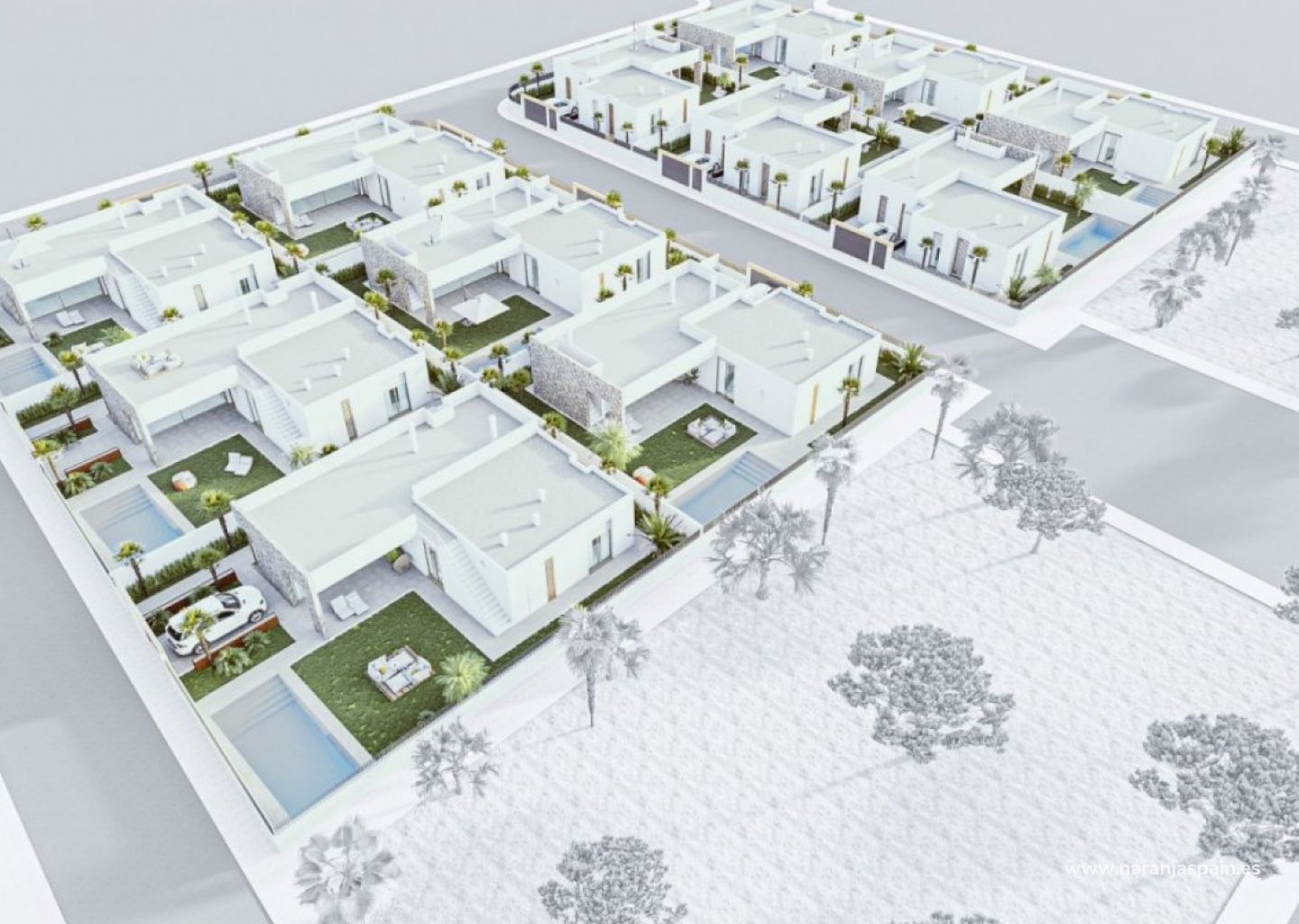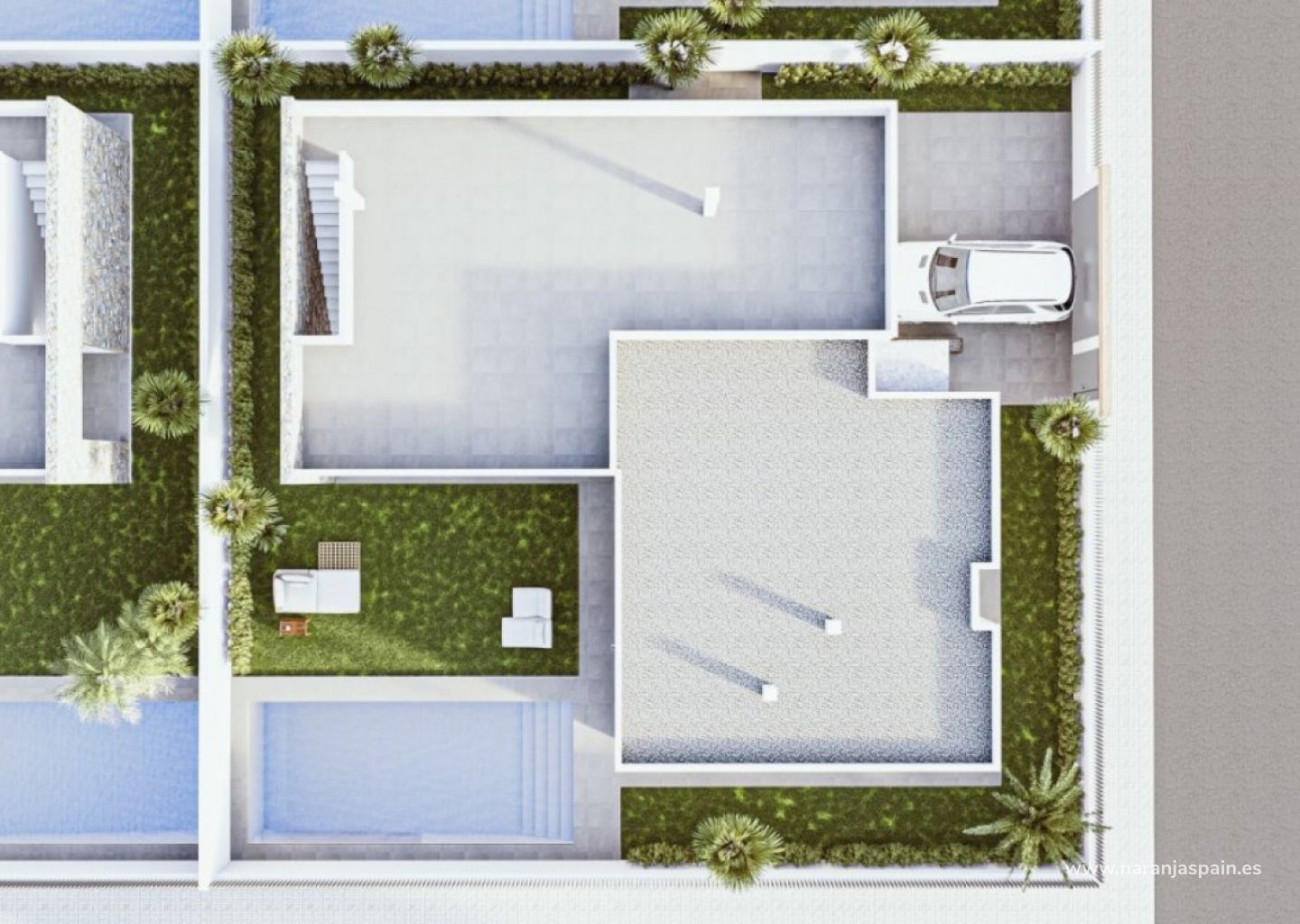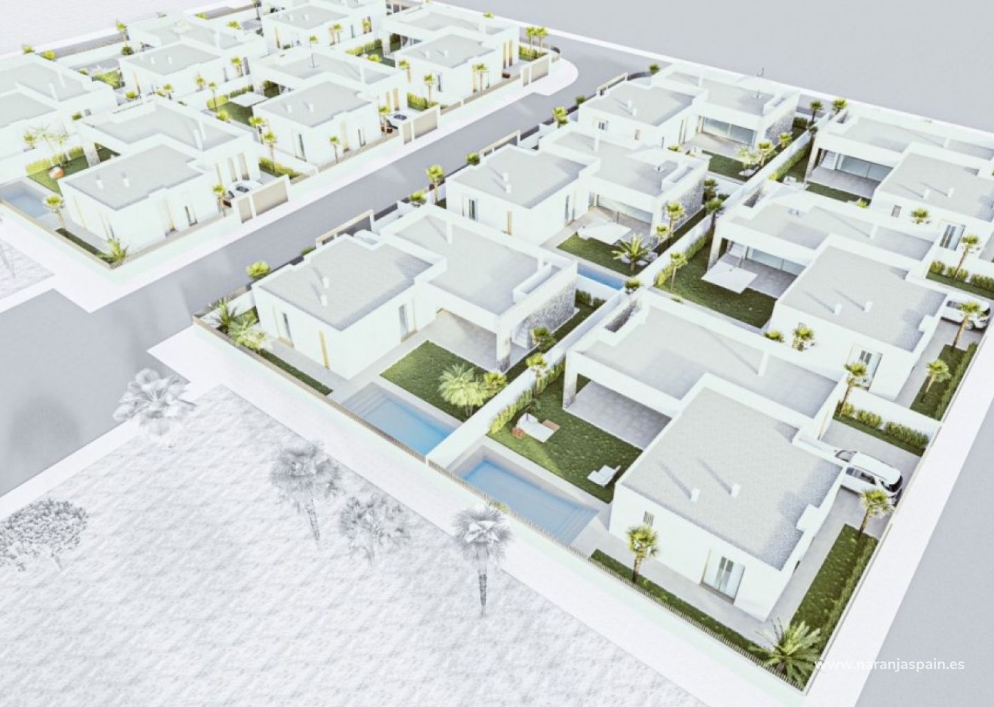 VILLAS DE OBRA NUEVA EN MAR DE CRISTAL Villa de nueva construcción de una sola planta con 3 dormitorios, 2 baños y solarium privado a 500 metros de las playas de Mar De Cristal. Las villas tienen una moderna cocina abierta con la sala de estar, donde las altas ventanas correderas tiene acceso al jardín con piscina privada y plaza de aparcamiento. Mar De Cristal es una ciudad costera en medio de la hermosa naturaleza y los parques naturales de los que se encuentran las fotos añadido. Este es uno de los lugares más bellos de España y del mundo entero. En Mar De Cristal encontrará algunos restaurantes agradables y un supermercado. Los bonitos restaurantes de Los Belones están a sólo 2 km's. Las playas de 36 km de La Manga están a 5 minutos en coche. El mágico Cabo de Palos y Portmán están a 5 minutos en coche. El gran centro comercial de Cartagena está a menos de 10 minutos en coche. El aeropuerto de Murcia Corvera está a 30 minutos, el aeropuerto de Alicante a 55 minutos.