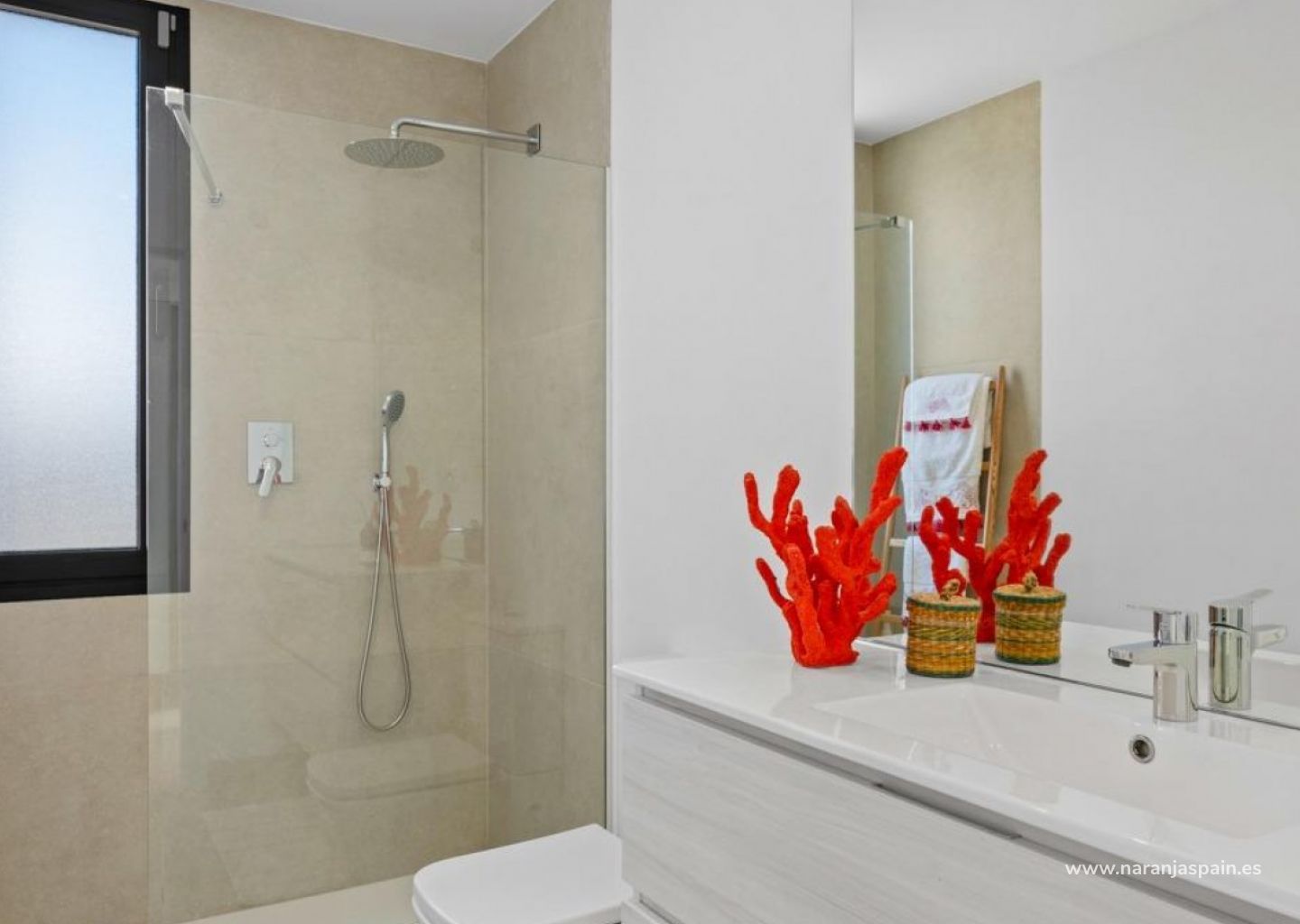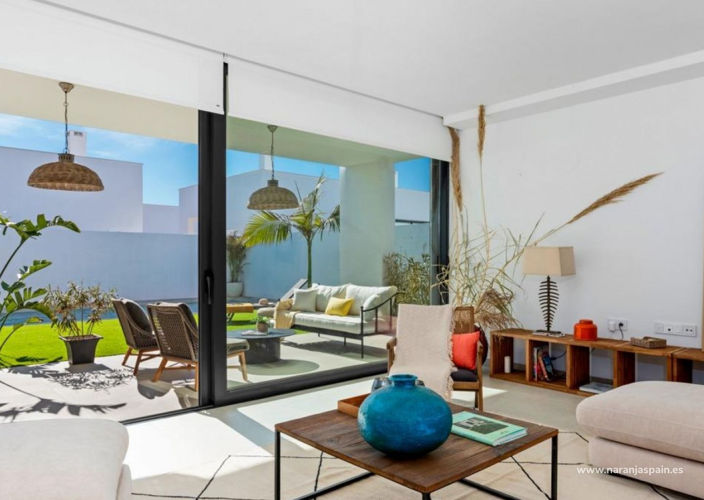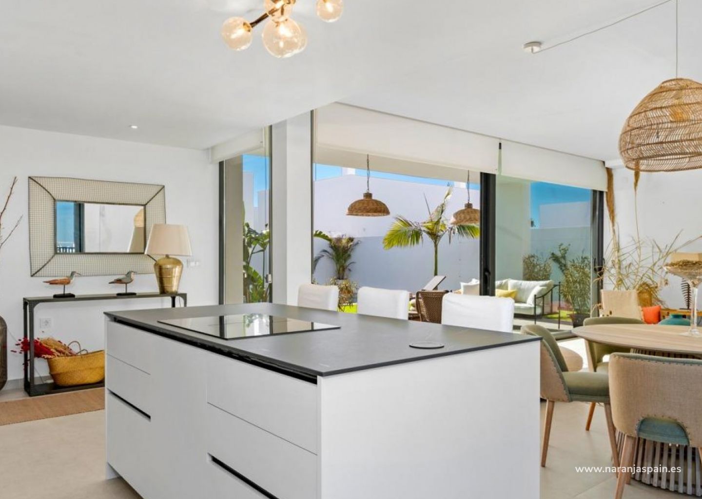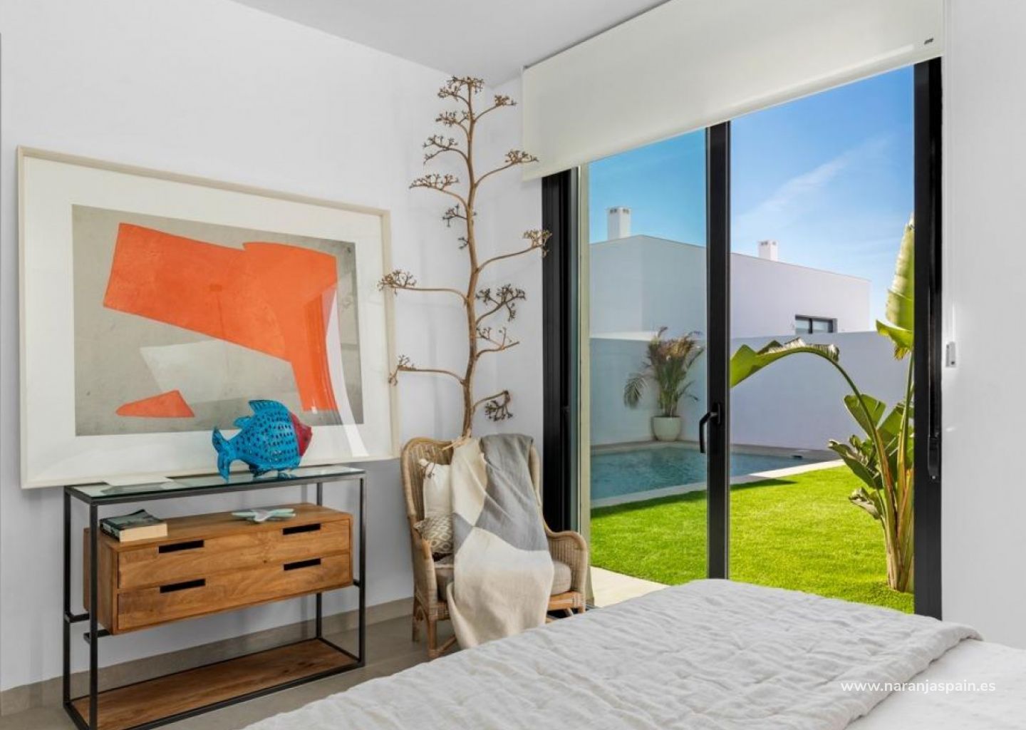 VILLAS DE OBRA NUEVA EN MAR DE CRISTAL Villa de nueva construcción de una sola planta con 3 dormitorios, 2 baños y solarium privado a 500 metros de las playas de Mar De Cristal. Las villas tienen una moderna cocina abierta con la sala de estar, donde las altas ventanas correderas tiene acceso al jardín con piscina privada y plaza de aparcamiento. Mar De Cristal es una ciudad costera en medio de la hermosa naturaleza y los parques naturales de los que se encuentran las fotos añadido. Este es uno de los lugares más bellos de España y del mundo entero. En Mar De Cristal encontrará algunos restaurantes agradables y un supermercado. Los bonitos restaurantes de Los Belones están a sólo 2 km's. Las playas de 36 km de La Manga están a 5 minutos en coche. El mágico Cabo de Palos y Portmán están a 5 minutos en coche. El gran centro comercial de Cartagena está a menos de 10 minutos en coche. El aeropuerto de Murcia Corvera está a 30 minutos, el aeropuerto de Alicante a 55 minutos.