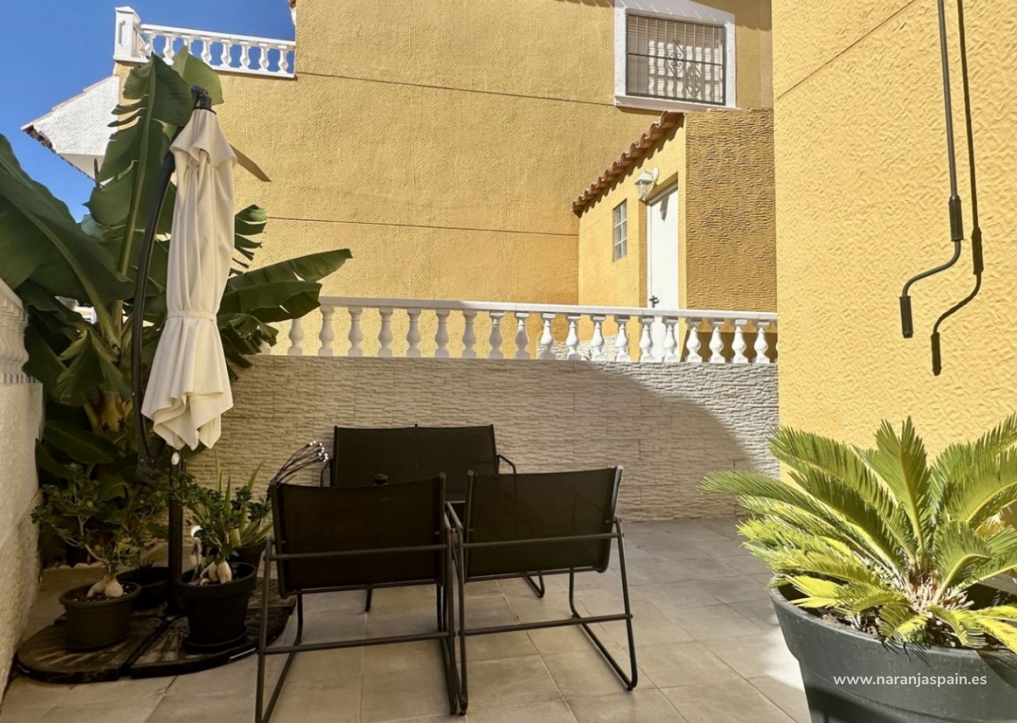 Esta preciosa villa pareada de dos plantas ofrece 167 m² construidos y 116 m² útiles, ubicada en una tranquila y segura urbanización con piscina comunitaria y zonas verdes. Cuenta con 3 dormitorios amplios, 2 baños, cocina independiente totalmente equipada, y un luminoso salón con aire acondicionado. Además, dispone de 4 terrazas privadas, ideales para comer al aire libre, relajarse o tomar el sol. Ubicación privilegiada: A 6 minutos de la playaA 5 minutos de La Zenia BoulevardA 10 minutos del Hospital de TorreviejaA 2 minutos de colegios Perfecta como vivienda habitual, casa de vacaciones o inversión.
