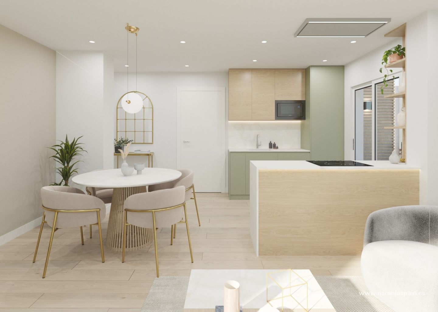 Las viviendas cuentan con espacios abiertos y luminosos donde el salón, comedor y cocina se integran con una amplia terraza, perfecta para disfrutar del estilo de vida mediterráneo.