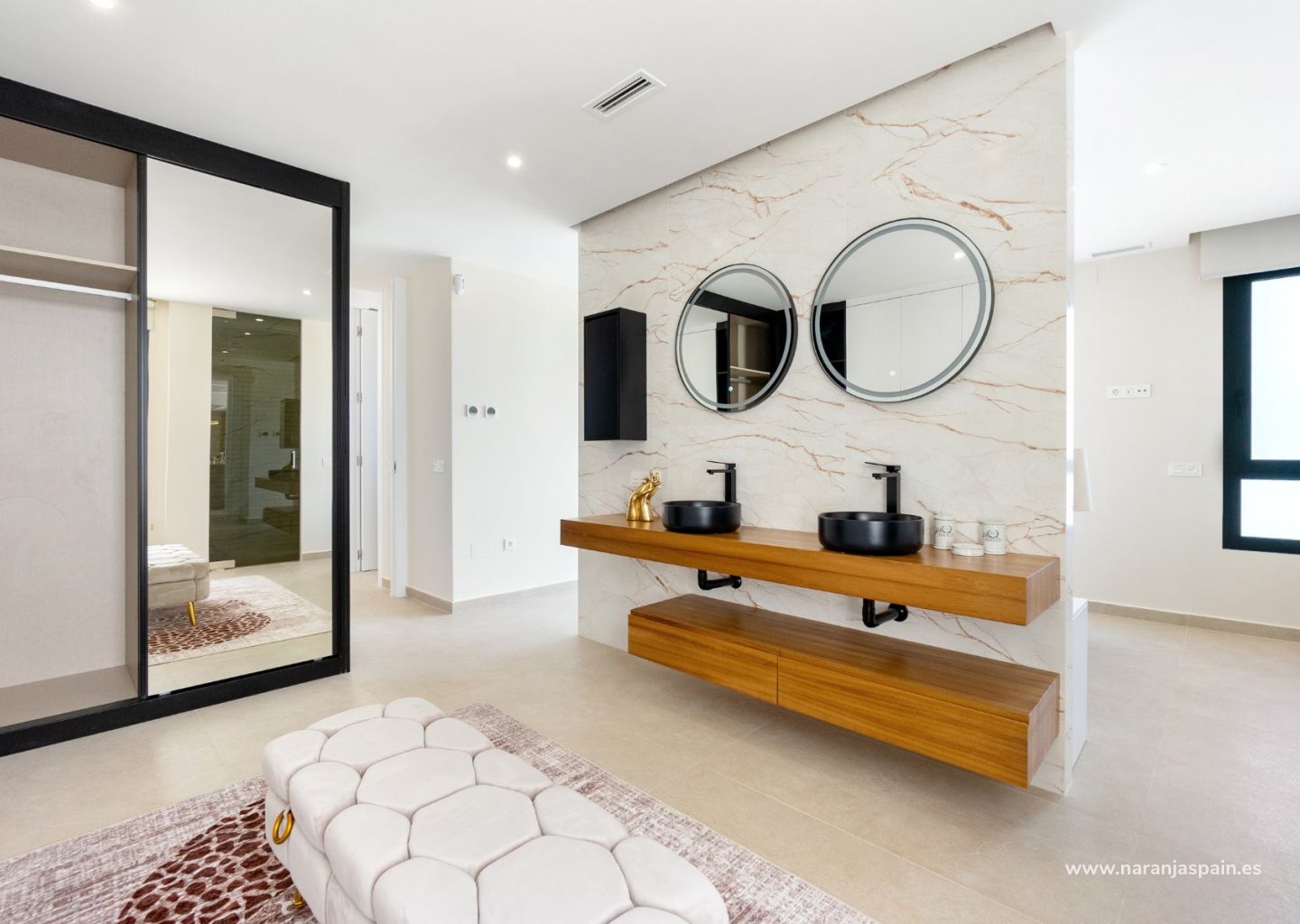 Эта красивая вилла имеет полы с подогревом в главной спальне и всех ванных комнатах, систему сигнализации, электрические жалюзи, солнечные батареи и станцию для зарядки электромобилей.