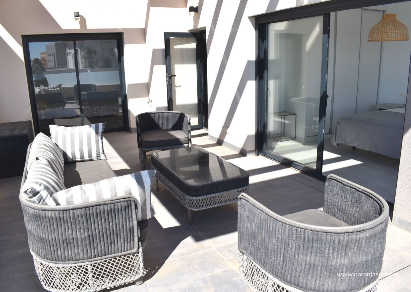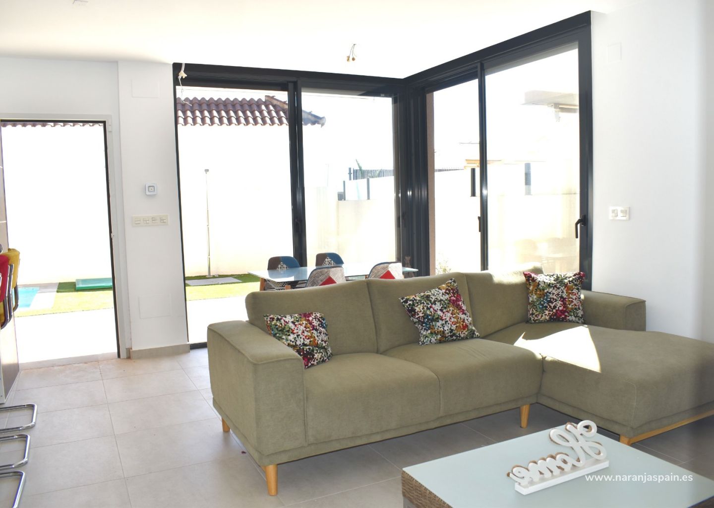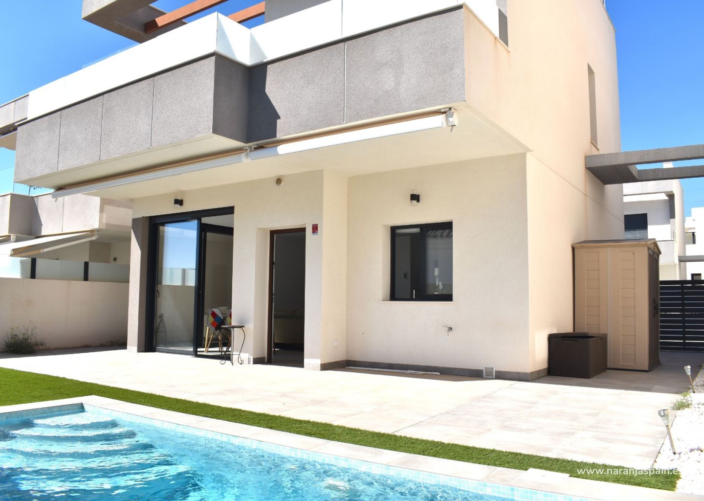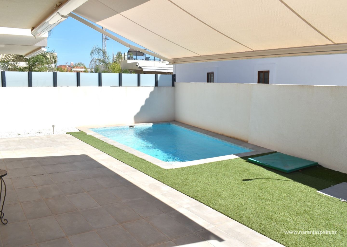 В доме 3 спальни, 3 ванные комнаты, гостиная, столовая, полностью оборудованная американская кухня, патио, большой солярий, частный бассейн, кладовая, парковочное место.