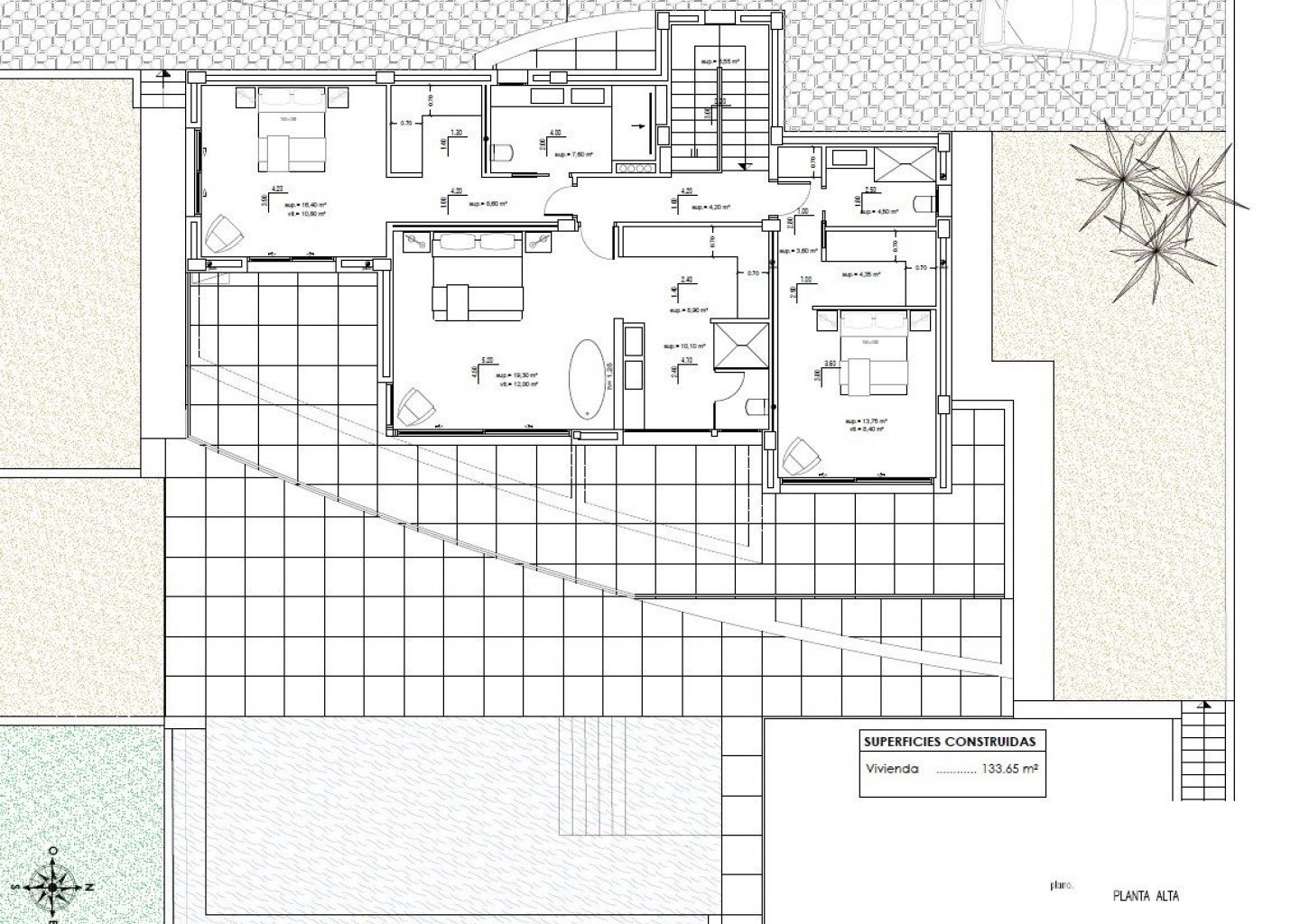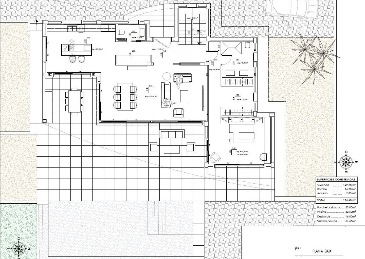 ЭКСТРАС: Столярные изделия с безопасным стеклом, кухня с бытовой техникой Siemens, ванные комнаты и краны марки Roca, светодиодное освещение, аэротермальная система для горячей воды и подогрева полов, канальный кондиционер (горячий и холодный) во всем доме, солнечные батареи, встроенные шкафы, электрические жалюзи, внутренняя сигнализация, предварительная установка внешней сигнализации и камер наблюдения. Прямоугольный бассейн с системой перелива 12x4.5 метров, зона барбекю 22м2, прачечная, готовый сад.
