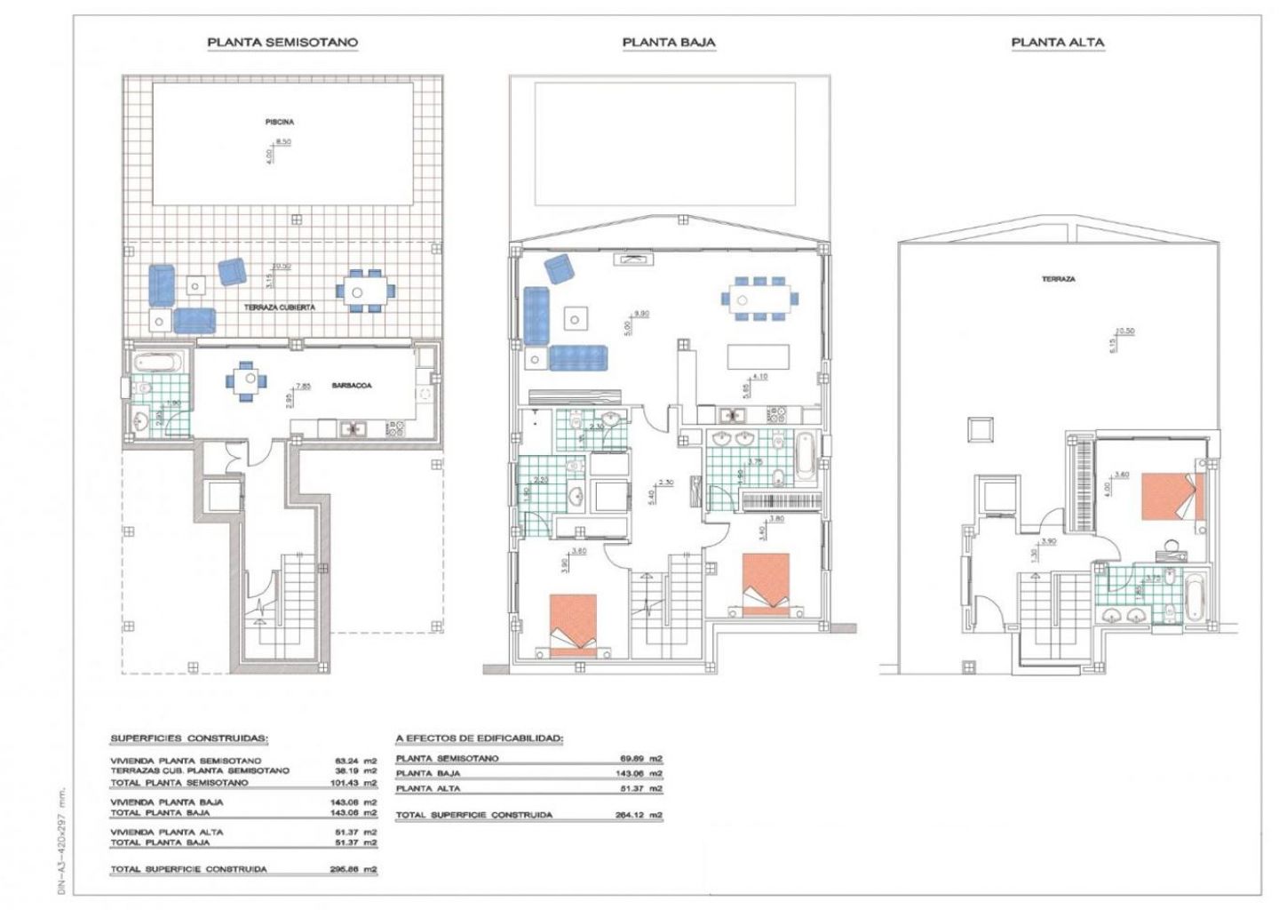 На первом этаже находится гостиная-столовая, кухня с подсобным помещением, две спальни с ванными комнатами, гостевой туалет и терраса.