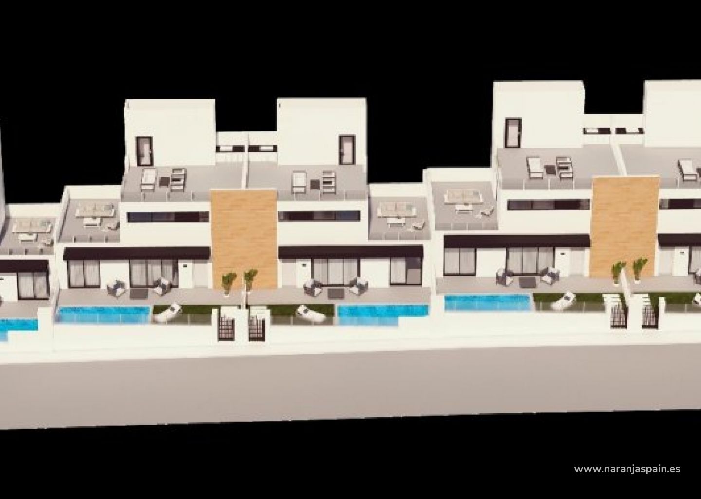 НОВЫЕ ТАУНХАУСЫ В ОРИУЭЛА-КОСТА Новые таунхаусы в Лас Филипинас, Ориуэла Коста. Комплекс из 12 таунхаусов, каждый с 2/3 спальнями, 2 ванными комнатами, передним и задним дворами и собственной террасой на крыше. На первом этаже находится светлая гостиная с кухней открытого плана, просторная спальня со встроенным шкафом и ванная комната. На втором этаже находится вторая большая спальня со встроенным шкафом и ванная комната. Из спальни есть выход на солнечный балкон с местом для мебели. Наверху есть терраса на крыше, где можно разместить открытую кухню, джакузи и зону отдыха. В доме установлены кондиционеры, оборудованные ванные комнаты, аэротермическая система горячего водоснабжения, домофон, светодиодное освещение, открытая кухня и парковочное место. Частный бассейн 5,5 х 2,5 . Комплекс расположен рядом с тремя популярными полями для гольфа (Villamartin, Las Ramblas и Campoamor), всего в пяти минутах от лучших пляжей Ориуэла Коста. В нескольких минутах ходьбы вы найдете все услуги, такие как бары, рестораны и магазины, торговый центр La Fuente. Лас Филипинас расположен примерно в 10 минутах от знаменитой площади и поля для гольфа Villamartin, где вы найдете многочисленные бары и рестораны, супермаркет, банки, стоянку такси и остановку местного автобуса. Золотые пляжи Ориуэла Коста находятся всего в 5 минутах езды, как и новый торговый центр Zenia Boulevard (крупнейший торговый центр в провинции Аликанте с самым большим магазином одежды Primark в Европе). В 5 минутах езды находятся еще 3 поля для гольфа. В соседнем отеле Campoamor есть теннисные корты и тренер по теннису. Аэропорты Аликанте и Мурсии находятся в 45 минутах езды.