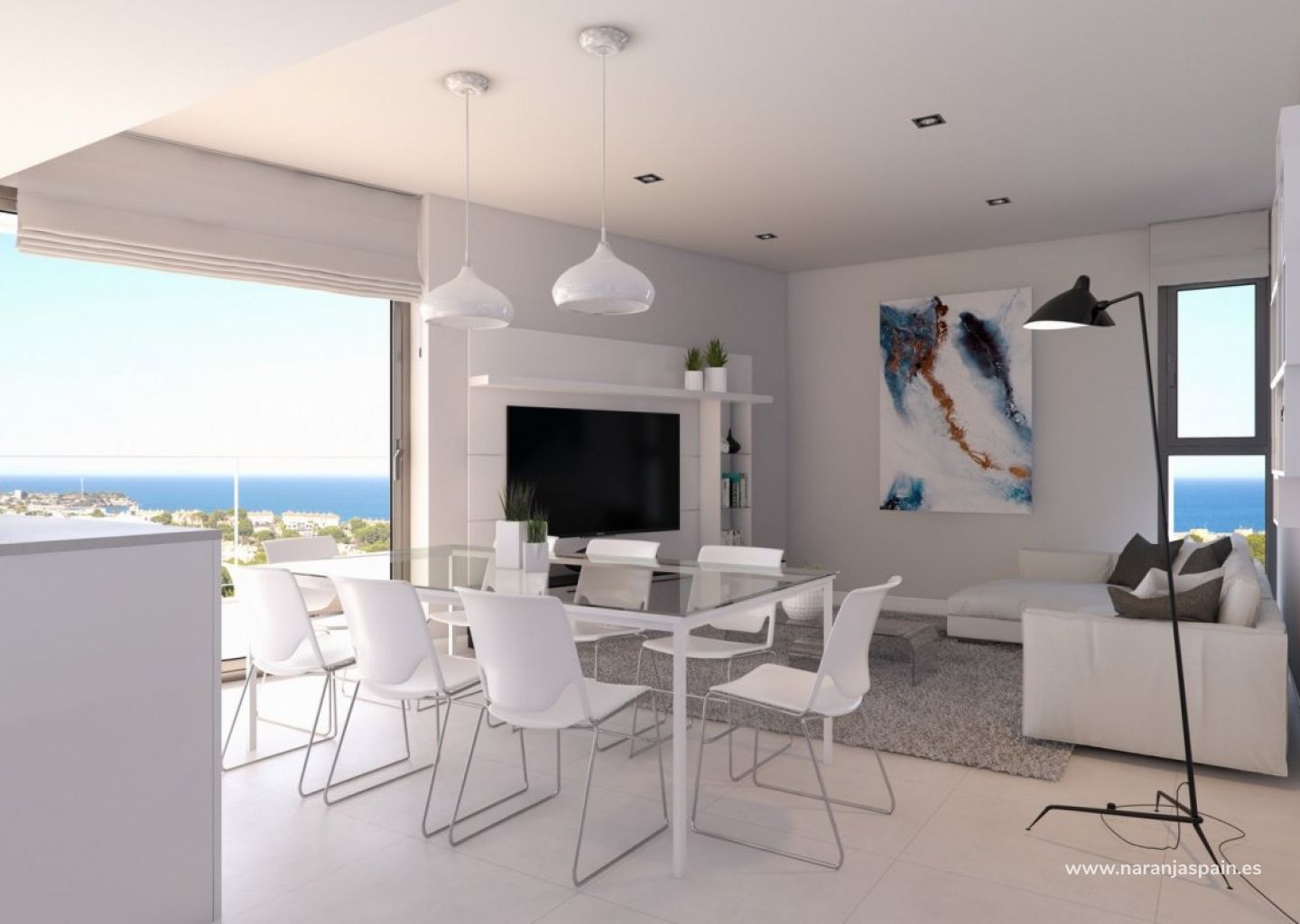 НОВАЯ ЭЛИТНАЯ ЖИЛОЙ ДОМ В КАМПУМОРЕ !!! Представьте себе место, где море и природа становятся главными героями невероятной истории: вашей. Представьте себе среду, в которой вы можете дать волю своему воображению и пережить тысячи приключений на суше и на море. Добро пожаловать в этот новый жилой комплекс в Кампоаморе, дом, где вы можете жить жизнью, о которой всегда мечтали, с самым красивым горизонтом на заднем плане: Средиземным морем. Вы выбираете дом, который вам больше всего подходит: апартаменты с 2 или 3 спальнями, пентхаусы с частными соляриями или цокольные этажи с частными садами. Все они имеют большие террасы, кухню, оборудованную современной техникой, самые эксклюзивные детали и общие зоны, предназначенные для отдыха всей семьей. Жить в этом жилом доме - значит ощутить Средиземное море в каждой комнате дома. Residencial расположен в самой высокой части Кампоамора, в непосредственной близости от пляжа Ла-Глеа и пристани для яхт. Жителям понравятся просторные террасы, виды на океан и природу, а также красивые декоративные сады. Современный и современный архитектурный дизайн, предлагающий эксклюзивные дома с высококачественной отделкой, сочетающими простор и новые технологии с точки зрения эффективности и строительства. Его внушительный фасад, сбалансированность форм, сад, который он находится внутри, и огромные террасы домов делают этот жилой дом прекрасным архитектурным образцом Средиземноморья. Вы можете рассчитывать на зеленые зоны для прогулок и принятия солнечных ванн. В местах общего пользования есть большой крытый бассейн с подогревом, зона отдыха на крыше, а также спортивная площадка, где можно заниматься на свежем воздухе, тренажерный зал, детская игровая площадка и большой открытый бассейн рядом с меньшим для детей и комната для гурманов. А поскольку мы знаем, что вам понравится кататься на велосипедах по окрестностям, мы зарезервировали место для хранения ваших велосипедов. Жители будут наслаждаться полностью доступным жилым домом премиум-класса для людей с ограниченными физическими возможностями и с гарантией проживания в помещении, защищенном частной охраной. Всего в 1000 м от пляжа и в нескольких минутах езды от торговых центров, знаменитых полей для гольфа, ресторанов с изысканной кухней и крупных городов, таких как Аликанте или Мерсия, в 1 часе езды. И все это в климате с 300 солнечными днями в году и средней годовой температурой почти 20ºC. Идеальное место для отдыха или постоянного проживания.