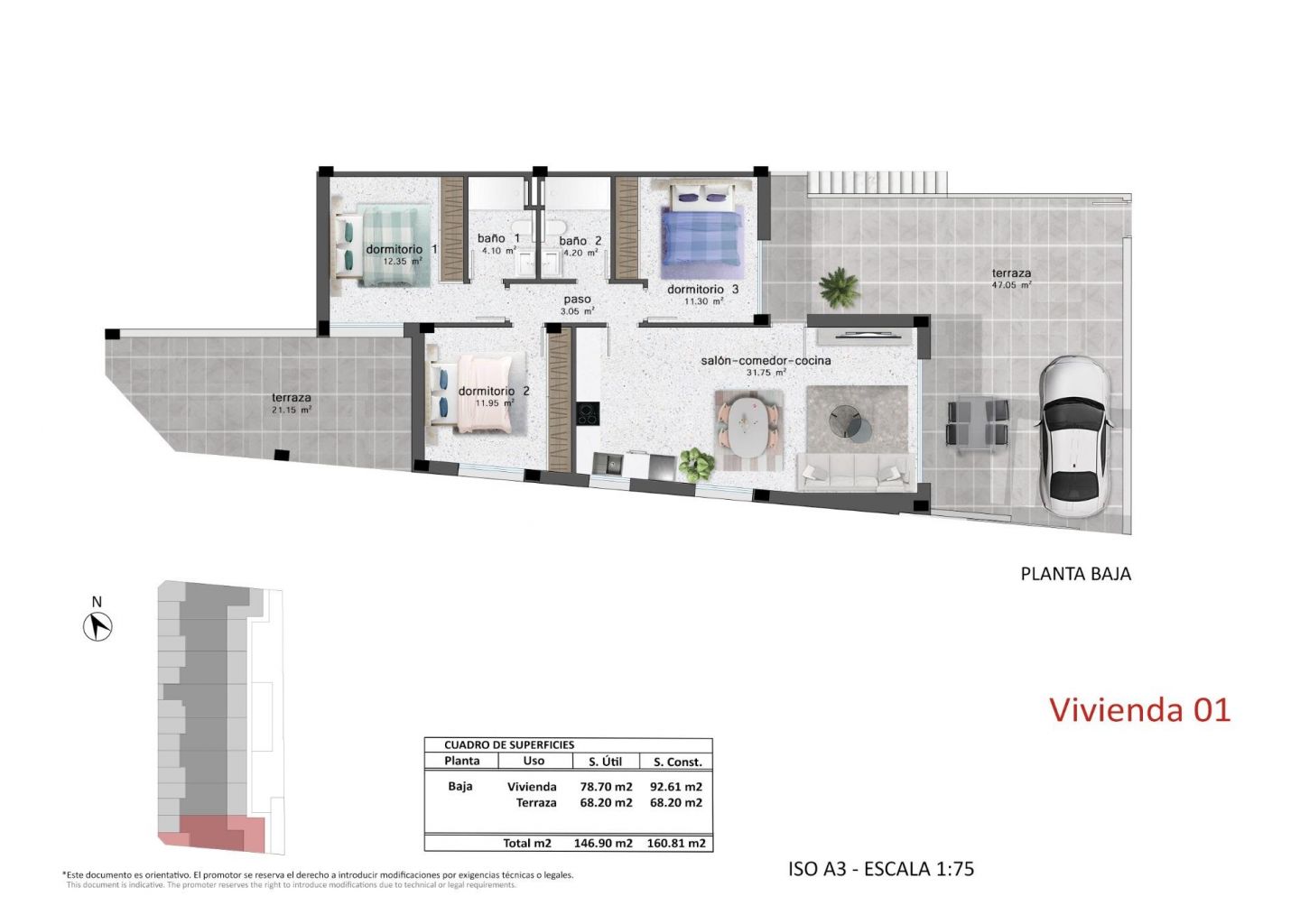 В каждом бунгало есть светлая и открытая гостиная/столовая и полностью оборудованная кухня с большими раздвижными дверями, которые органично соединяют внутреннее и внешнее пространство. Спальни оснащены встроенными шкафами. В комплексе установлены канальные кондиционеры, а для легкого доступа на верхние этажи предусмотрен лифт. Кроме того, для всех квартир предусмотрены частные парковочные места.