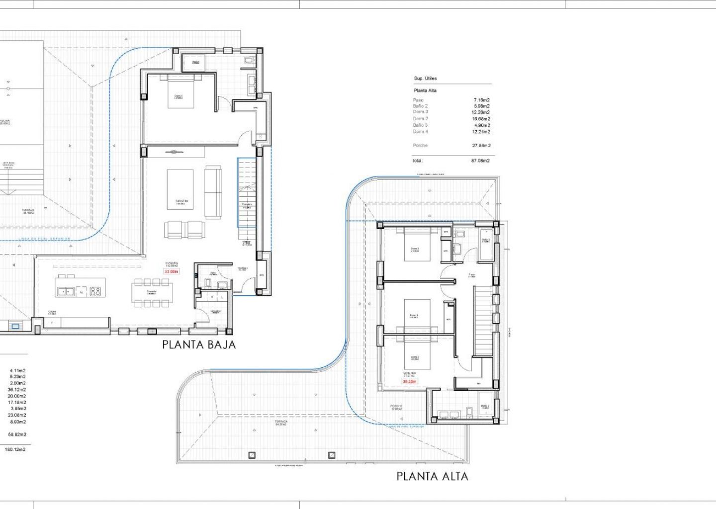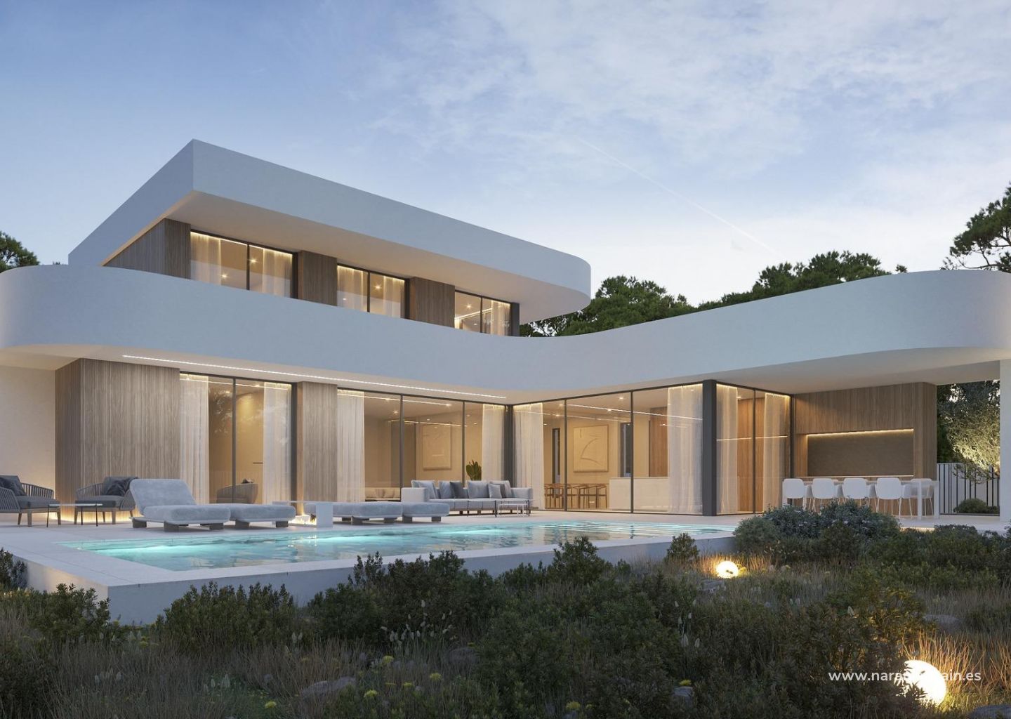 Роскошный современный дом в самом сердце Морайра-Теулада: современное средиземноморское уединение Откройте для себя потрясающий дом на одну семью, расположенный в живописном городке Морайра-Теулада, Коста-Бланка. Этот современный дом предлагает изысканное сочетание роскоши, комфорта и природной красоты, расположенный на обширном участке, который обеспечивает уединение и панорамные виды на окружающий средиземноморский ландшафт. Морайра-Теулада славится своей очаровательной прибрежной атмосферой, яркой местной культурой и легким доступом к основным удобствам. Архитектурное совершенство с панорамными видами Этот архитектурный дом представляет собой современный шедевр, гармонично вписывающийся в окружающую природу. Построенный из железобетона и украшенный деревянными деталями, дизайн дома включает в себя большие стеклянные панели для максимального естественного освещения и захватывающего вида на море и пышную зелень. Дом построен на различных террасах, дополняющих естественный уклон участка и открывающих беспрепятственные виды со всех сторон. Просторная внутренняя планировка для элегантной жизни Первый этаж - сердце этого дома, где расположена просторная гостиная открытой планировки площадью 36 м², выходящая на обширную открытую террасу площадью 81 м². Высококлассная кухня и столовая площадью 20 м² оснащены самой современной техникой, что делает ее идеальной как для повседневной жизни, так и для развлечений. Наверху находится главная спальня с гардеробной, ванной комнатой и выходом на террасу. Три дополнительные спальни, каждая со своими ванными комнатами и террасами, обеспечивают роскошный комфорт для членов семьи или гостей. Исключительные открытые пространства и бесконечный бассейн Открытые пространства предназначены для отдыха и развлечений, включая обширную террасу площадью 81 м², идеально подходящую для обедов на свежем воздухе или отдыха на средиземноморском солнце. Терраса ведет к потрясающему бассейну-инфинити, который сливается с горизонтом, создавая спокойный оазис. Тщательно благоустроенный сад с местными растениями и деревьями усиливает безмятежную атмосферу дома и обеспечивает дополнительную приватность. Экологичные и энергоэффективные характеристики Этот дом оснащен экологичными системами, включая современный тепловой насос «воздух-вода», полы с подогревом и канальную систему кондиционирования. Высокоэффективные окна и изоляция обеспечивают энергоэффективность и круглогодичный комфорт. Удачное расположение вблизи основных достопримечательностей Аэропорт Аликанте: 90 км Поле для гольфа La Sella: 15 км Порт Морайры: 2 км Торговые центры: 5 км Насладитесь современной роскошью и спокойствием в этом исключительном доме, идеально расположенном в востребованном районе Морайра-Теулада.