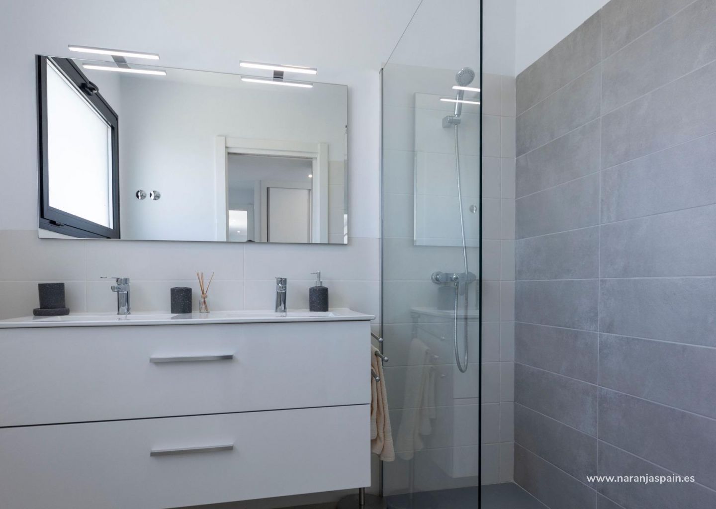 Черные матовые алюминиевые окна, моторизованные жалюзи, бронированная входная дверь в дом, белые лакированные межкомнатные двери, аэротермическая система для производства горячей воды, кварцевая (силстоуновая) столешница на кухне, электрические приборы включены, предварительная установка кондиционирования воздуха через воздуховоды.