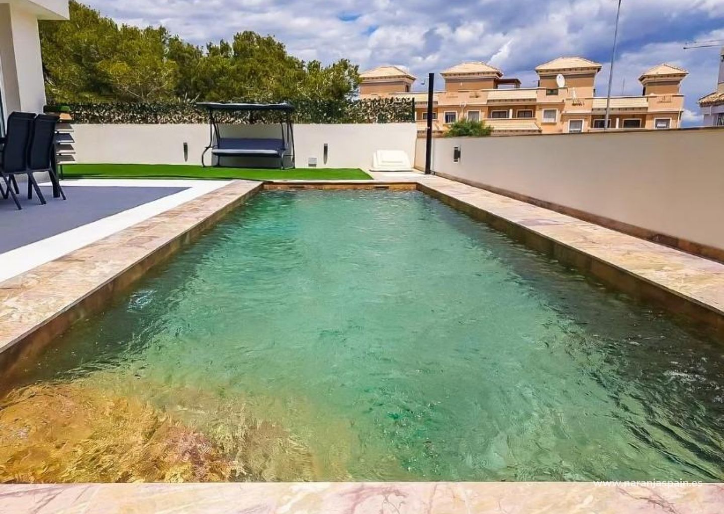 Эксклюзивный новый жилой комплекс в Ориуэла Коста Привилегированное расположение в самом сердце Коста Бланки Этот современный закрытый жилой комплекс расположен в Ориуэла Коста, одном из самых востребованных районов Коста Бланки, всего в 4 км от пляжей Ориуэла Коста. Его отличное расположение позволит вам наслаждаться средиземноморским солнцем круглый год, имея доступ к широкому спектру развлечений, гольфа и услуг. Всего в 5 минутах езды на автомобиле вы найдете поле для гольфа Villamartin и торговый центр La Zenia Boulevard, крупнейший в провинции Аликанте, с более чем 150 магазинами, ресторанами и развлекательными центрами. Современный дизайн и эксклюзивные дома Этот комплекс предлагает выбор недавно построенных домов, спроектированных в соответствии с высочайшими стандартами качества и комфорта: 7 таунхаусов с 2 и 3 спальнями и выходом к общему бассейну. 2 отдельные виллы с 3 спальнями и 3 ванными комнатами, каждая с частным бассейном. Дополнительно: подземные парковочные места и кладовые за дополнительную плату. Эксклюзивные качества и особенности Каждый объект недвижимости спроектирован с учетом современных и функциональных требований, включая: Ландшафтные экстерьеры с искусственной травой рядом с бассейном. Аэротермальное отопление для большей энергоэффективности. Кухня с кварцевой барной стойкой, зоной отдыха и 50-сантиметровой металлической раковиной. Лестница с перилами из стекла и нержавеющей стали. Полностью оборудованные ванные комнаты с настенными шкафами, зеркалом и душевой перегородкой. Предварительная установка канального кондиционера. Встроенные шкафы в каждой спальне с раздвижными дверями и системой плавного закрывания. Входная дверь с системой безопасности для спокойствия. Близость к достопримечательностям Пляж Пунта Прима - 4 км. Поле для гольфа Villamartin - 5 км. Торговый центр La Zenia Boulevard - 5 км. Центр города Торревьеха - 10 км. Аэропорт Аликанте - 40 минут. Аэропорт Мурсия-Корвера - 1 час. Насладитесь средиземноморским стилем жизни Этот эксклюзивный жилой комплекс идеально подходит для тех, кто ищет современный дом на побережье Коста-Бланка, с доступом к пляжам, гольфу и всем удобствам. Не упустите эту уникальную возможность и свяжитесь с нами сегодня, чтобы получить дополнительную информацию или договориться о просмотре.