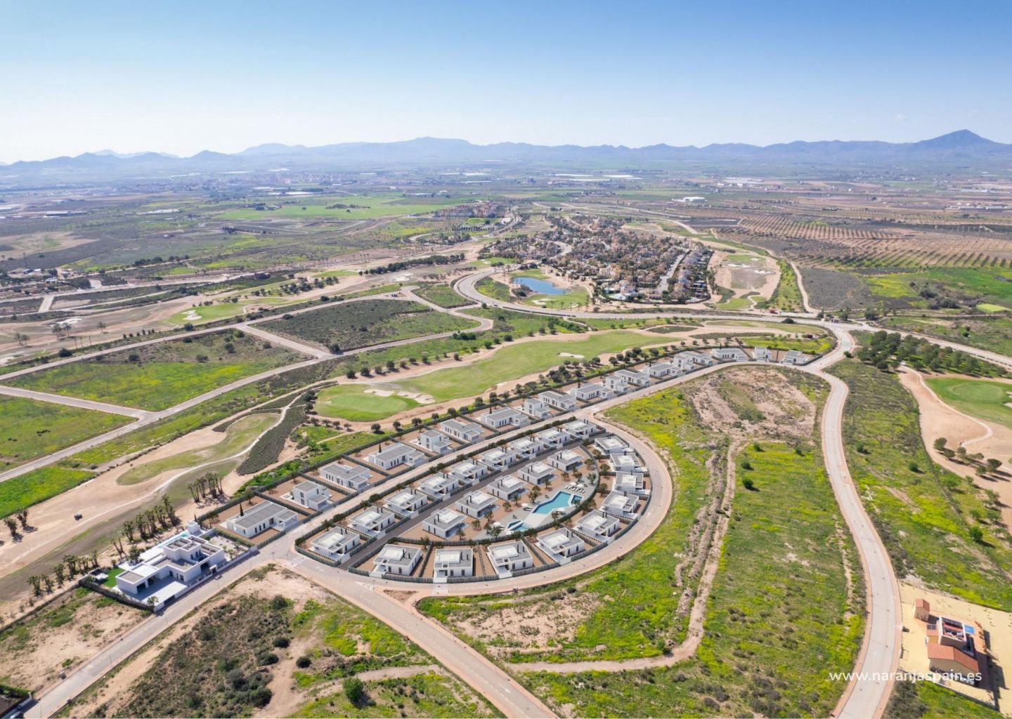 Эксклюзивные виллы на первой линии поля для гольфа в Хасиенда-дель-Аламо, Коста-Калида Современные виллы в одном из лучших гольф-курортов Испании Откройте для себя уникальную возможность стать владельцем роскошной виллы новой постройки на первой линии гольф-курорта Hacienda del Álamo, расположенного между историческими городами Картахена и Мурсия, в самом сердце Коста-Кальида. Эти современные виллы, спроектированные с учетом комфорта, уединения и элегантности, находятся в исключительной гольф- и развлекательной зоне. Каждая вилла имеет просторную планировку с 3 спальнями, 2 ванными комнатами и гостевым туалетом, одно- или двухэтажную конструкцию, в зависимости от выбранной модели. Благодаря большим участкам площадью от 700 квадратных метров и застроенной площади 146 квадратных метров, эти дома предоставляют достаточно места как для внутренней, так и для внешней жизни. Высококачественные материалы и отделка Эти виллы на первой линии оснащены современными удобствами для обеспечения максимального комфорта и стиля, в том числе: Частный бассейн и ландшафтный сад с системой капельного орошения Полностью оборудованная кухня с мебелью и бытовой техникой Кондиционер по всему дому Ванные комнаты с мебелью, зеркалами и душевыми перегородками Алюминиевые окна с теплоизоляцией и двойным остеклением Доступ к большому общественному бассейну с натуральным газоном и детской зоной Роскошная жизнь в гольф-курорте Hacienda del Álamo Hacienda del Álamo славится как один из лучших гольф-курортов Испании, предлагающий жителям расслабляющий образ жизни, спорт и удобства. 18-луночное поле для гольфа и академия Спортивные сооружения, включая теннис, паддл-теннис, тренажерный зал и фитнес-классы Главный клуб с панорамным видом, рестораном средиземноморской кухни и солнечными террасами 4-звездочный отель и спа для отдыха и оздоровления Семейные зоны, включая детские игровые площадки, бассейны и велосипедные дорожки Традиционная испанская деревня с магазинами, кафе и новыми ресторанами, которые скоро откроются Стратегическое расположение с отличным транспортным сообщением Аэропорт Корвера (Мурсия): 18 км (около 15 минут) Картахена: 36 км Центр города Мурсия: 40 км Пляжи Мар Менор: 28 км Торговые центры (Dos Mares, Espacio Mediterráneo): в пределах 30 км Ваш дом мечты рядом с полем для гольфа ждет вас Если вы ищете постоянное место жительства, место для отдыха или выгодное вложение средств на побережье Коста-Кальида, эти виллы на первой линии поля для гольфа в Hacienda del Álamo — идеальный вариант. Свяжитесь с нами сегодня, чтобы узнать больше или организовать индивидуальную экскурсию.