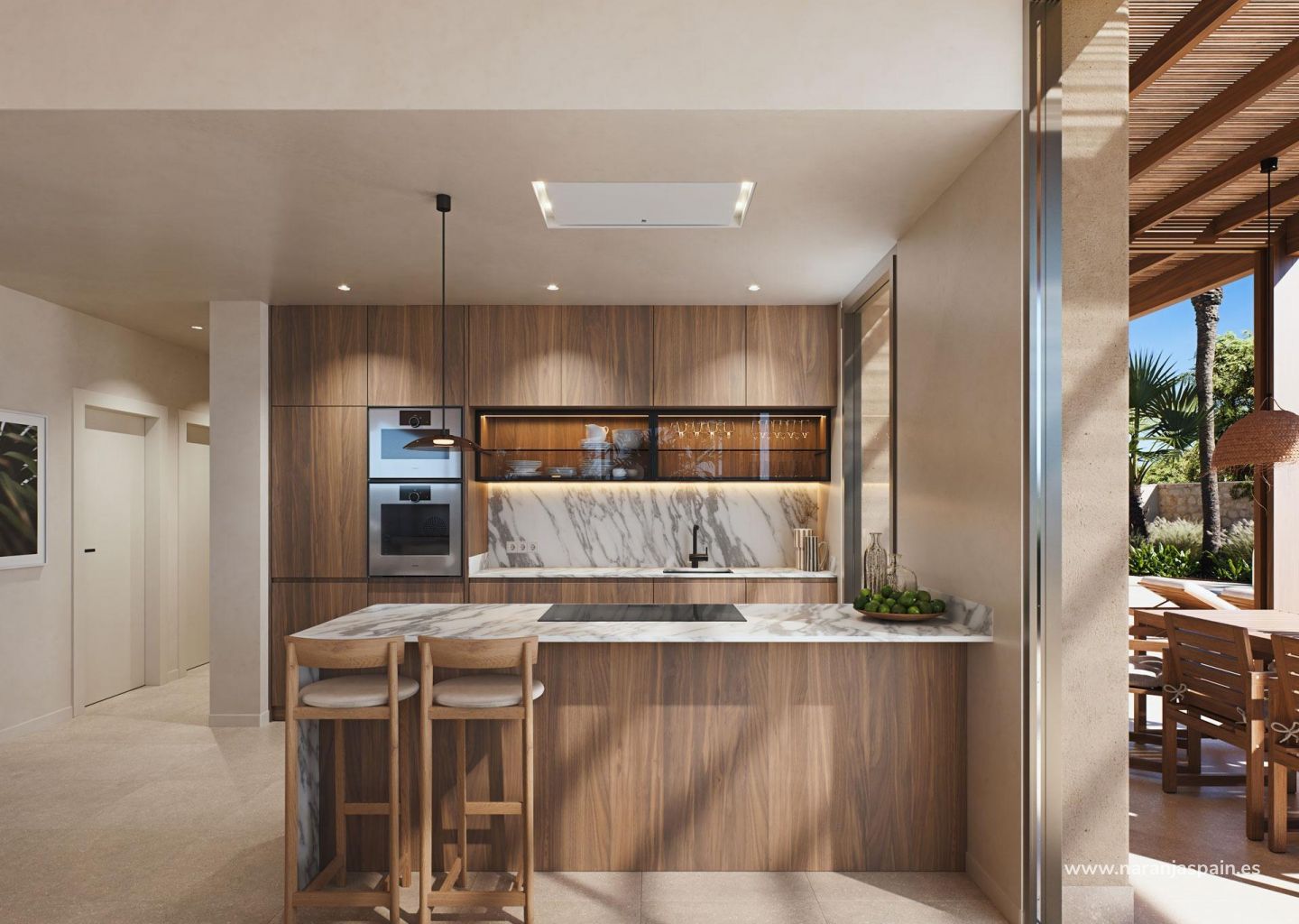 Полностью оборудованная современная кухня с высококачественной отделкой и встроенной бытовой техникой