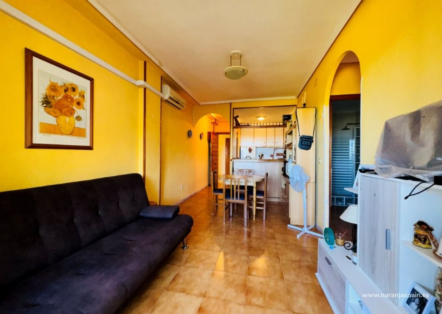 Ten apartament znajduje się w kompleksie mieszkalnym Puerto Romano, zaledwie 200 metrów od plaży i 5 minut spacerem od centrum miasta. Powierzchnia użytkowa apartamentu wynosi 40 m² i obejmuje sypialnię, salon z jadalnią, kuchnię z otwartą przestrzenią, łazienkę oraz taras od strony zachodniej. Apartament znajduje się na drugim piętrze i posiada windę. Do dyspozycji Gości jest wspólny taras z widokiem na morze i lagunę La Mata. Wspólny basen. Opłaty wspólnotowe: 400 EUR rocznie Podatek od nieruchomości (IBI): 150 EUR