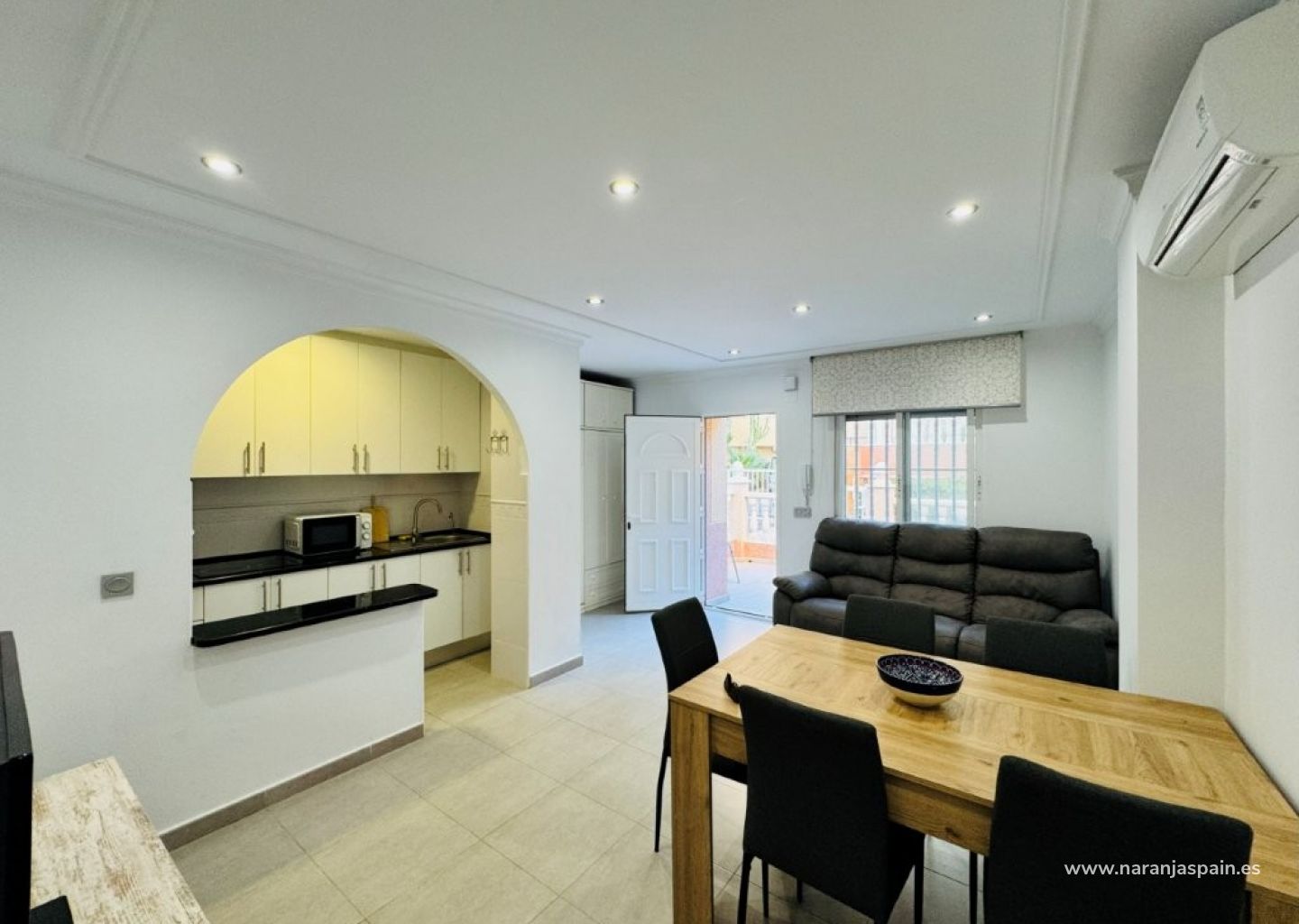 Nieruchomość znajduje się w kompleksie mieszkalnym Alanis. Jest otoczona terenami zielonymi, posiada wspólny basen, prywatne miejsce parkingowe oraz prywatną drogę dojazdową do plaży. Nieruchomość ma powierzchnię około 65 m², na którą składa się przestronny taras, dwie sypialnie, otwarta kuchnia z salonem i jadalnią oraz jedna łazienka. Nieruchomość jest sprzedawana umeblowana i wyposażona. We wszystkich pomieszczeniach zainstalowana jest klimatyzacja. Opłaty wspólnotowe: 650 EUR rocznie Podatek od nieruchomości (IBI): 220 EUR