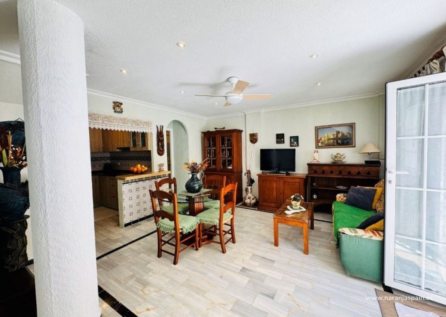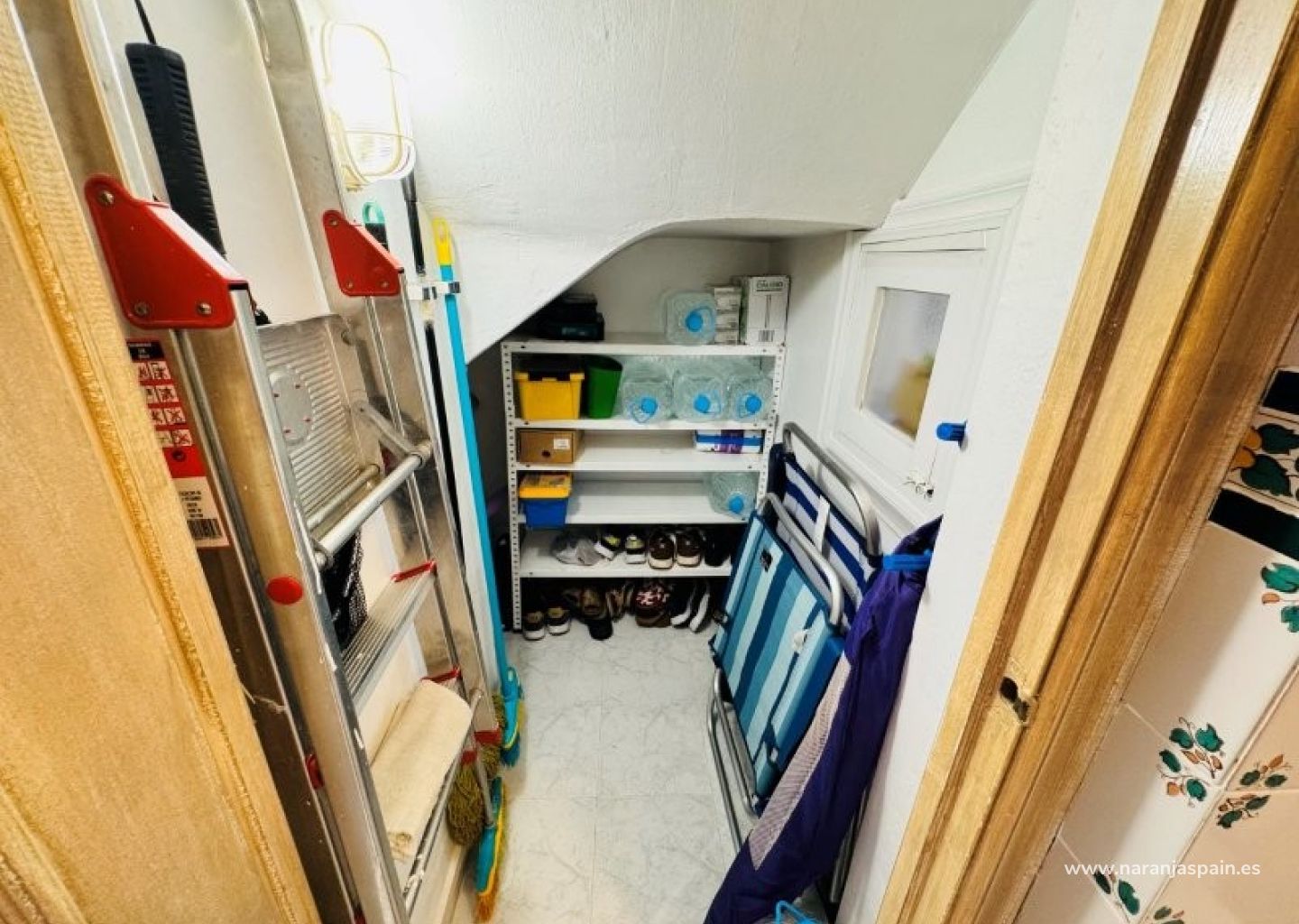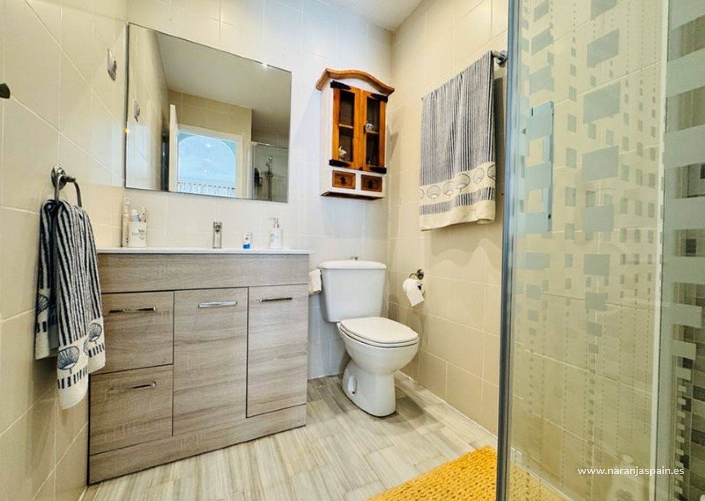 Jest to dom położony w jednej z najlepszych dzielnic La Mata. Prywatny kompleks z ogrodami, fontannami i wspólnym basenem. Dom jest dwurodzinny o powierzchni 75 m2 + taras 12 m2. Rozmieszczony jest na 2 piętrach. Na parterze znajduje się duży, słoneczny taras przy wejściu do bungalowu, a dalej przestronny salon z jadalnią i odnowiona kuchnia typu open space. Odnowiona łazienka na parterze. Dodatkowo spiżarnia i wewnętrzne patio. Na piętrze znajdują się dwie sypialnie i kolejna, bardzo przestronna łazienka. Dom jest IDEALNY. Okna wychodzą na południe, a z balkonu głównej sypialni możemy podziwiać morze. Idealne, by cieszyć się wakacjami. Społeczność: 360 € rocznie IBI: 240 €