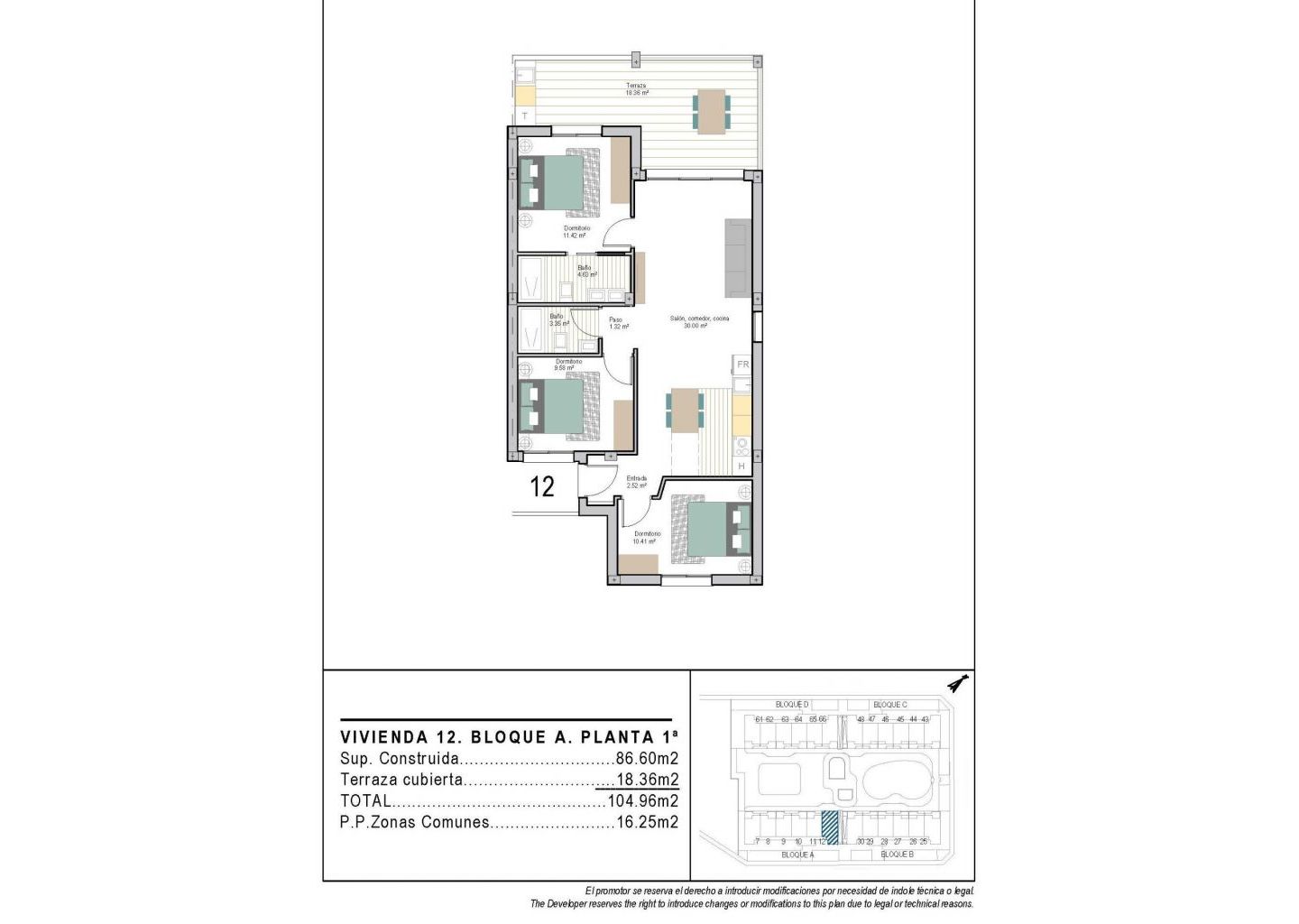 Современные новые апартаменты в Сан-Каэтано, Торрепачеко, Мурсия Современная жизнь в спокойной средиземноморской обстановке Этот эксклюзивный новый жилой комплекс расположен в Сан-Каэтано, Мурсия, входящем в состав муниципалитета Торре-Пачеко, всего в 9 км от моря и в окружении нескольких известных полей для гольфа. Проект сочетает в себе спокойствие, комфорт и современный дизайн, предлагая идеальную среду для постоянного проживания, отдыха или инвестиций на побережье Коста-Калида. Комплекс состоит из 72 квартир с 2 и 3 спальнями и 2 ванными комнатами, одна из которых примыкает к спальне, распределенных по четырем современным зданиям. Также запланирована вторая фаза строительства с бунгало и виллами, что добавит еще больше ценности и привлекательности этому району. Специально спроектированные общие зоны для отдыха и хорошего самочувствия Жители смогут наслаждаться тщательно благоустроенными общими зонами, которые включают два бассейна, красивые сады и полностью оборудованный тренажерный зал. Эти зоны создают приятную и социальную среду, где соседи могут расслабиться, позаниматься спортом и насладиться средиземноморским образом жизни. Жилой комплекс также оснащен фотоэлектрическими солнечными панелями мощностью 40 кВт, которые помогают покрыть расходы сообщества на электроэнергию, способствуя созданию более устойчивой и энергоэффективной среды проживания. Квартиры с частными открытыми пространствами и солярием Каждая квартира спроектирована так, чтобы максимально использовать преимущества жизни на открытом воздухе. Квартиры на первом этаже имеют частные сады, квартиры на втором этаже — просторные террасы, а квартиры на верхнем этаже — террасы и частные солярии на крыше. Все квартиры имеют летнюю кухню на террасе или солярии, идеально подходящую для наслаждения солнцем круглый год. Все дома имеют открытое парковочное место и частное помещение для хранения вещей в подвале, что добавляет дополнительного удобства и практичности. Качественные характеристики и энергоэффективные установки Эти новостройки сдаются с качественной отделкой и современными установками, обеспечивающими комфорт и функциональность, в том числе: Полностью оборудованная кухня с бытовой техникой Полностью оборудованные ванные комнаты с мебелью, зеркалами, освещением и душевыми перегородками Предварительная установка для канального кондиционирования Аэротермальная система для горячей воды Сочетание современных материалов и энергоэффективных систем делает эти дома идеальными для круглогодичного проживания. Отличное расположение рядом с гольф-полями, пляжами и инфраструктурой Сан-Каетано — тихий и хорошо связанный с инфраструктурой поселок с местными удобствами, магазинами и услугами. Его стратегическое расположение позволяет легко добраться до пляжей, гольф-полей и основных транспортных узлов. Ключевые расстояния до достопримечательностей: Пляжи Мар-Менор — 9 км Рода-Гольф — 6 км Гольф-клуб La Serena — 14 км Лос-Алькасарес — 10 км Картахена — 30 км Аэропорт Мурсия-Корвера — 25 км Аэропорт Аликанте — 90 км Забронируйте свою недвижимость в Сан-Каетано сегодня Этот современный жилой комплекс предлагает отличную возможность насладиться средиземноморским образом жизни в тихом, но хорошо связанном с транспортной инфраструктурой рай