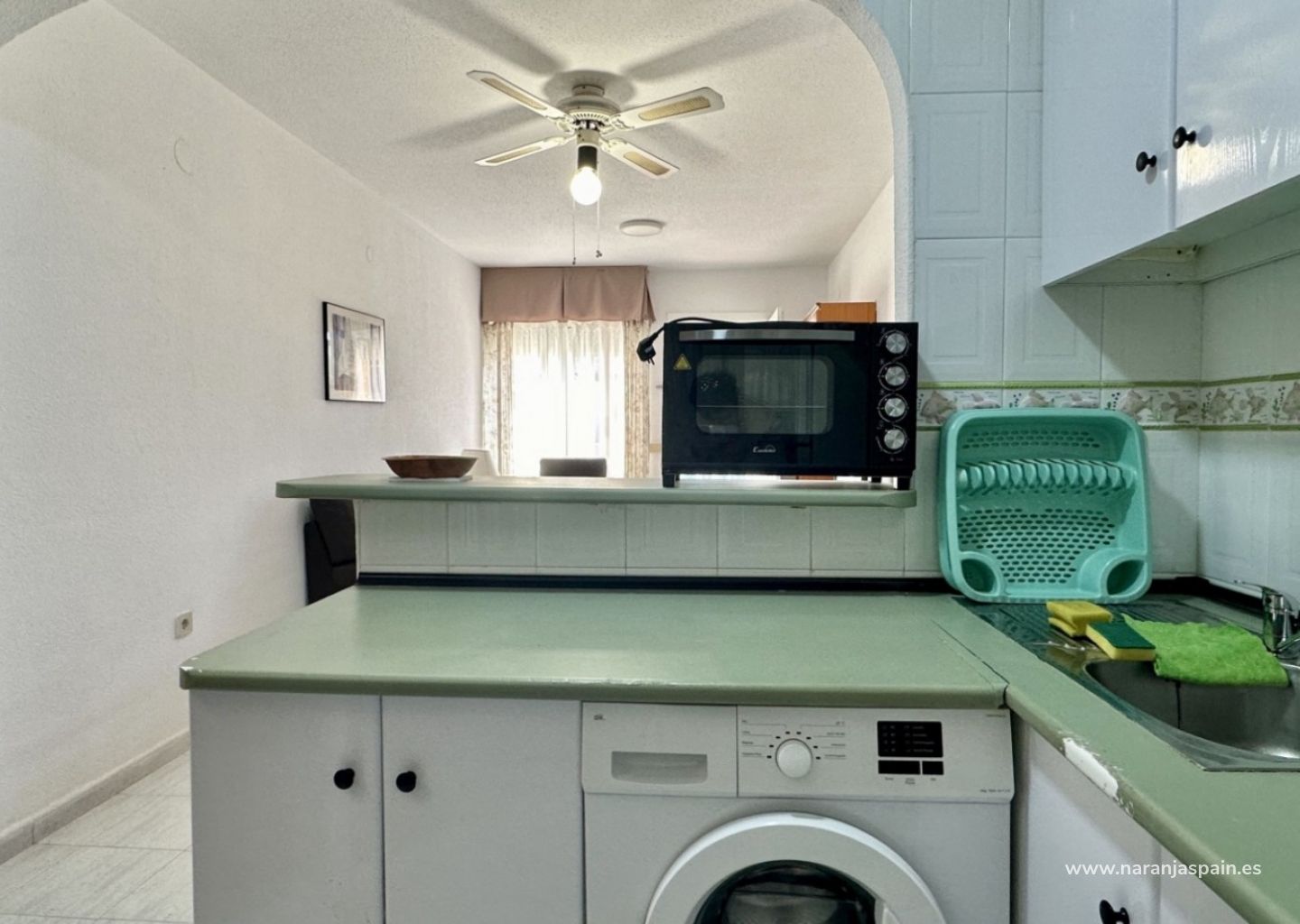 Ухоженный сдвоенный дом расположен в закрытом жилом комплексе в районе Playa Flamenca Norte, Ориуэла Коста. Дом находится на одном уровне и имеет доступ к общему бассейну и зеленым зонам. Общая площадь составляет 75 м² (около 55 м² жилой площади). В доме две спальни, одна ванная комната, светлая гостиная и функциональная кухня. Также имеется терраса для отдыха на свежем воздухе. Включены встроенные шкафы, кладовая, кондиционер и гаражное место, входящее в цену. Удобное расположение рядом со спортивными зонами, супермаркетами и пляжем делает этот объект отличным вариантом для проживания или инвестиций.