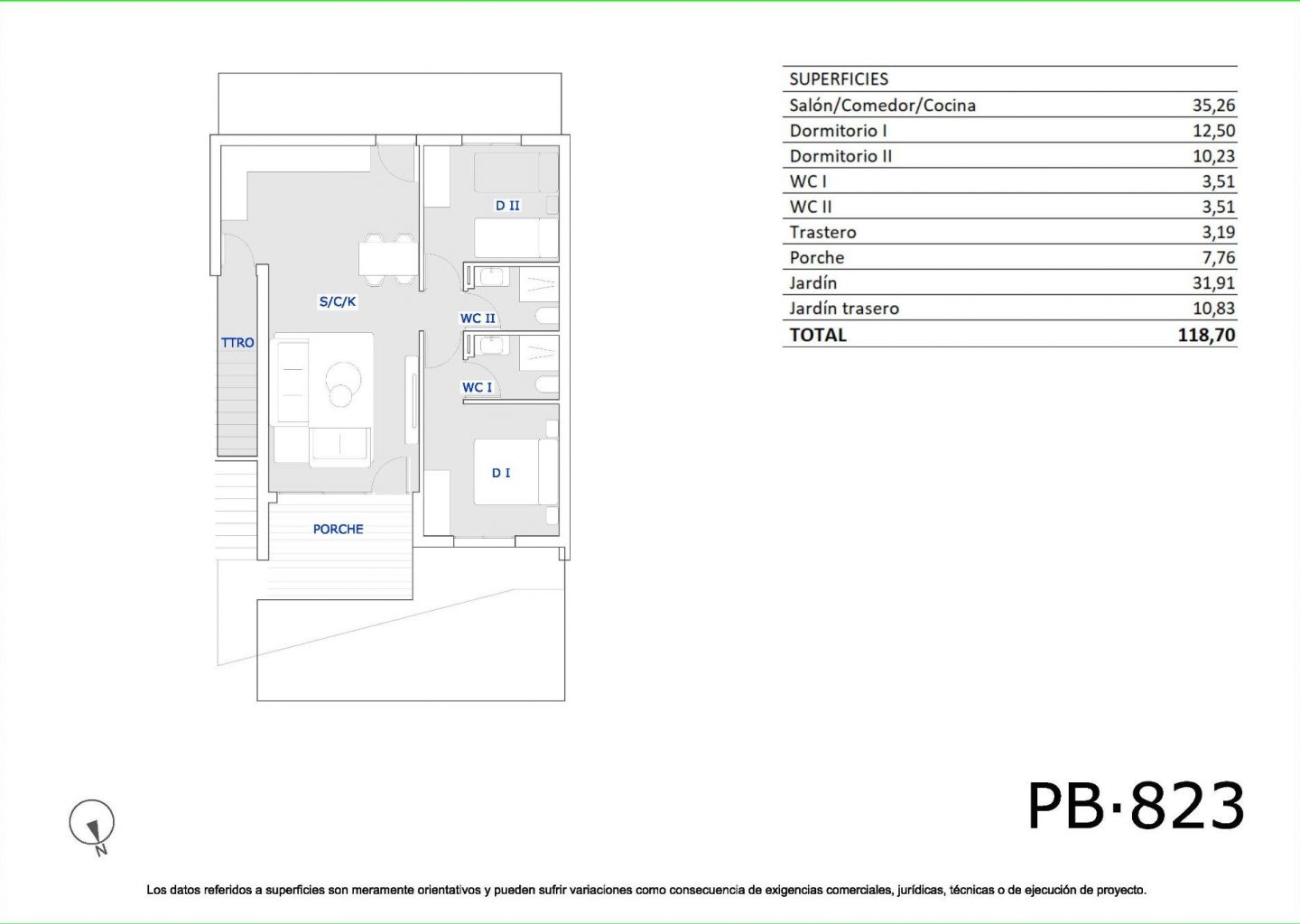 Современные, недавно построенные бунгало в Сан-Мигель-де-Салинас с 3 общими бассейнами Средиземноморский образ жизни в окружении природы Откройте для себя этот современный жилой комплекс из недавно построенных бунгало на окраине Сан-Мигель-де-Салинас, города на юге провинции Аликанте, в шаговой доступности от всех удобств. Этот очаровательный городок сочетает в себе близость к морю и спокойствие природы, что делает его идеальным местом как для постоянного проживания, так и для отдыха. Варианты жилья для любого образа жизни Комплекс предлагает апартаменты в стиле бунгало с 2 или 3 спальнями, доступные в двух планировках: Первый этаж с частным садом и кладовой Верхний этаж с частной солнечной террасой Каждый дом спроектирован с учетом современных и функциональных требований, обеспечивая комфорт, естественное освещение и открытые пространства, чтобы наслаждаться средиземноморским климатом круглый год. Общие зоны для семейного отдыха Этот жилой комплекс полностью огорожен и может похвастаться отличными общими удобствами: 3 больших общих бассейна для взрослых и детей Более 3 400 м² благоустроенных зеленых зон Эти удобства делают комплекс идеальным местом для семей, пар и пенсионеров, ищущих высокое качество жизни в безопасной и спокойной обстановке. Современные удобства и энергоэффективность Дома отличаются высококачественными материалами и тщательной отделкой: Полностью оборудованная кухня Наружные столярные изделия с терморазрывом и двойным остеклением Усиленная входная дверь Включена мебель для ванной комнаты Предварительная установка сплит-систем кондиционирования в гостиной и спальнях Отличное расположение рядом с гольф-полями, пляжами и инфраструктурой Сан-Мигель-де-Салинас стратегически расположен рядом с туристическими и природными зонами: Поля для гольфа, такие как Vistabella, Las Colinas и Campoamor, находятся менее чем в 10 км Пляжи Ориуэла-Коста находятся в 11 км Лагуны Торревьехи и Ла-Маты находятся всего в 8 км Торговый центр La Zenia Boulevard находится в 9 км Аэропорт Аликанте-Эльче находится в 58 км (35 минут езды на автомобиле) Международный аэропорт Мурсии находится в 63 км (1 час езды на автомобиле) Ваш новый дом на Коста-Бланке Эти объекты недвижимости представляют собой отличную возможность для тех, кто ищет качество, комфорт и превосходное расположение. Свяжитесь с нами прямо сейчас, чтобы получить дополнительную информацию или забронировать просмотр и сделать первый шаг к своей жизни на Коста-Бланке.
