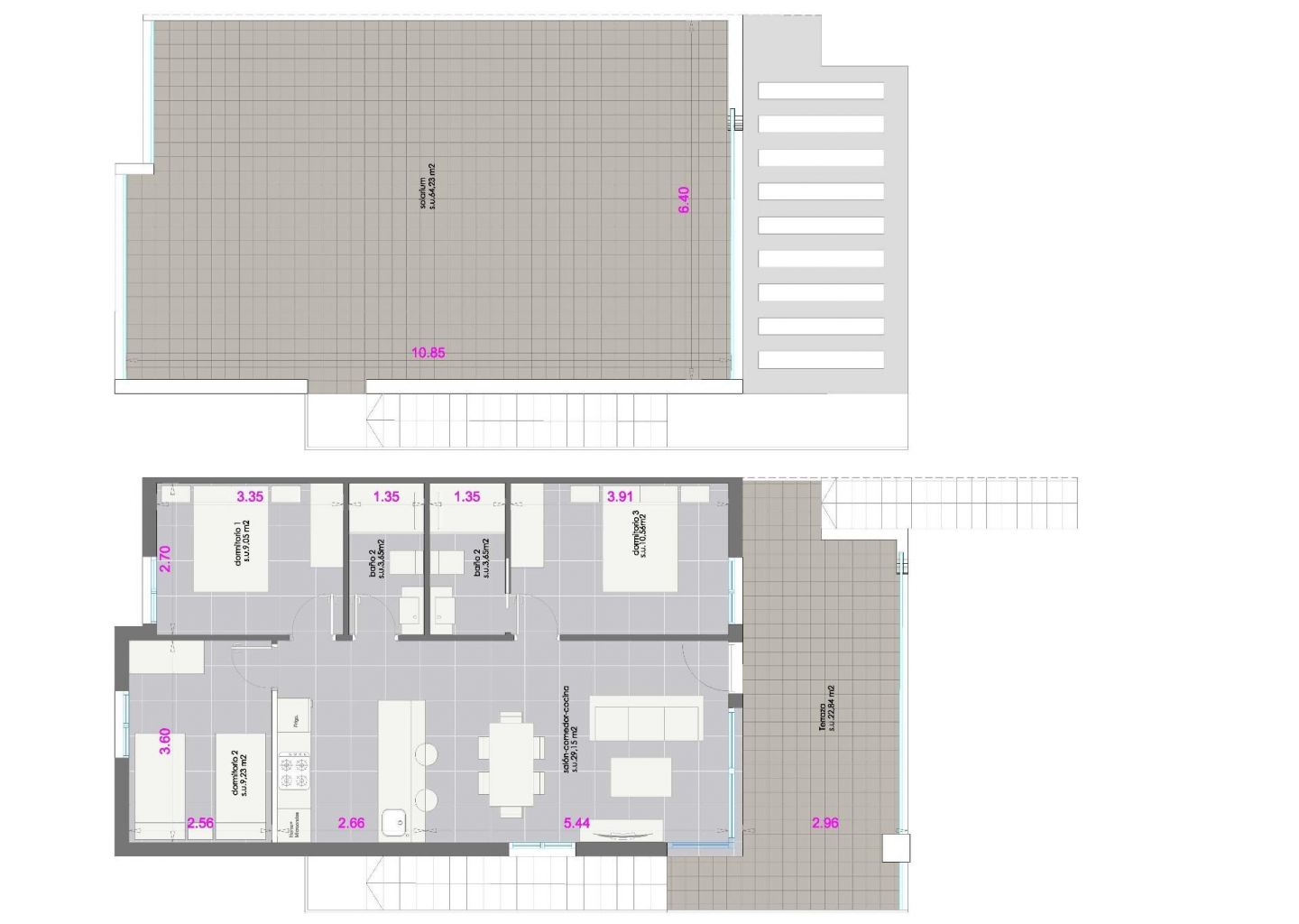 Новые бунгало с садом или солярием рядом с пляжем в Пилар-де-ла-Орадада Современные средиземноморские дома, созданные для комфорта Откройте для себя этот эксклюзивный новый жилой комплекс в Пилар-де-ла-Орадада, предлагающий современные бунгало, расположенные менее чем в 2 км от пляжа. Эти дома, спроектированные с учетом комфорта, стиля и функциональности, идеально подходят для круглогодичного проживания, отдыха или в качестве выгодного вложения средств на побережье Коста-Бланка. Комплекс предлагает на выбор бунгало на первом этаже с частными садами и бунгало на верхнем этаже с частными соляриями на крыше. Каждая недвижимость тщательно спроектирована, чтобы максимально использовать возможности жизни на открытом воздухе и средиземноморский климат. Просторные дома с 2 спальнями и высококачественной отделкой Каждый бунгало имеет 2 спальни и 2 ванные комнаты, одна из которых примыкает к спальне, а также частное парковочное место в подземном гараже. Дома построены из качественных материалов и имеют современную отделку, что обеспечивает энергоэффективность и долговечность. Основные характеристики: Предварительная установка для канального кондиционирования Алюминиевые наружные столярные изделия с двойным остеклением и моторизованными жалюзи Безопасная входная дверь для спокойствия Аэротермальная система для эффективного производства горячей воды Встроенные шкафы во всех спальнях Полностью оборудованные ванные комнаты с мебелью и душевыми перегородками Эти характеристики обеспечивают комфортный и практичный дом, подходящий для всех сезонов. Частный комплекс с бассейном и ландшафтными садами Жилой комплекс является частным и безопасным, с красивыми ландшафтными садами и большим общим бассейном. Это создает приятную и расслабляющую атмосферу, где жители могут отдохнуть и насладиться прекрасным климатом. Расположенный недалеко от центра города, комплекс позволяет жителям добираться пешком до супермаркетов, ресторанов, баров, школ и основных услуг без необходимости использования автомобиля. Отличное расположение рядом с пляжами и услугами Пилар-де-ла-Орадада — очаровательный испанский городок в самой южной части Коста-Бланки, известный своей оживленной атмосферой, местными магазинами, традиционными площадями и дружелюбным сообществом. Песчаные пляжи Торре-де-ла-Орадада и Миль-Пальмерас находятся всего в 2 км от комплекса и предлагают мелкий золотистый песок, живописную набережную и пристань для яхт. Этот район также идеально подходит для велосипедных прогулок, пеших прогулок и занятий спортом на открытом воздухе. Расстояния до основных достопримечательностей Гольф-клуб Lo Romero — 5 км Бульвар Ла Зения — 15 км Аэропорт Мурсия Корвера — 40 км Аэропорт Аликанте — 55 км Пристань для яхт Торре-де-ла-Орадада — 3 км Забронируйте свой новый дом сегодня Не упустите возможность приобрести новый бунгало рядом с пляжем в одном из самых привлекательных районов Коста-Бланки. Свяжитесь с нами сегодня, чтобы получить дополнительную информацию и договориться о посещении.