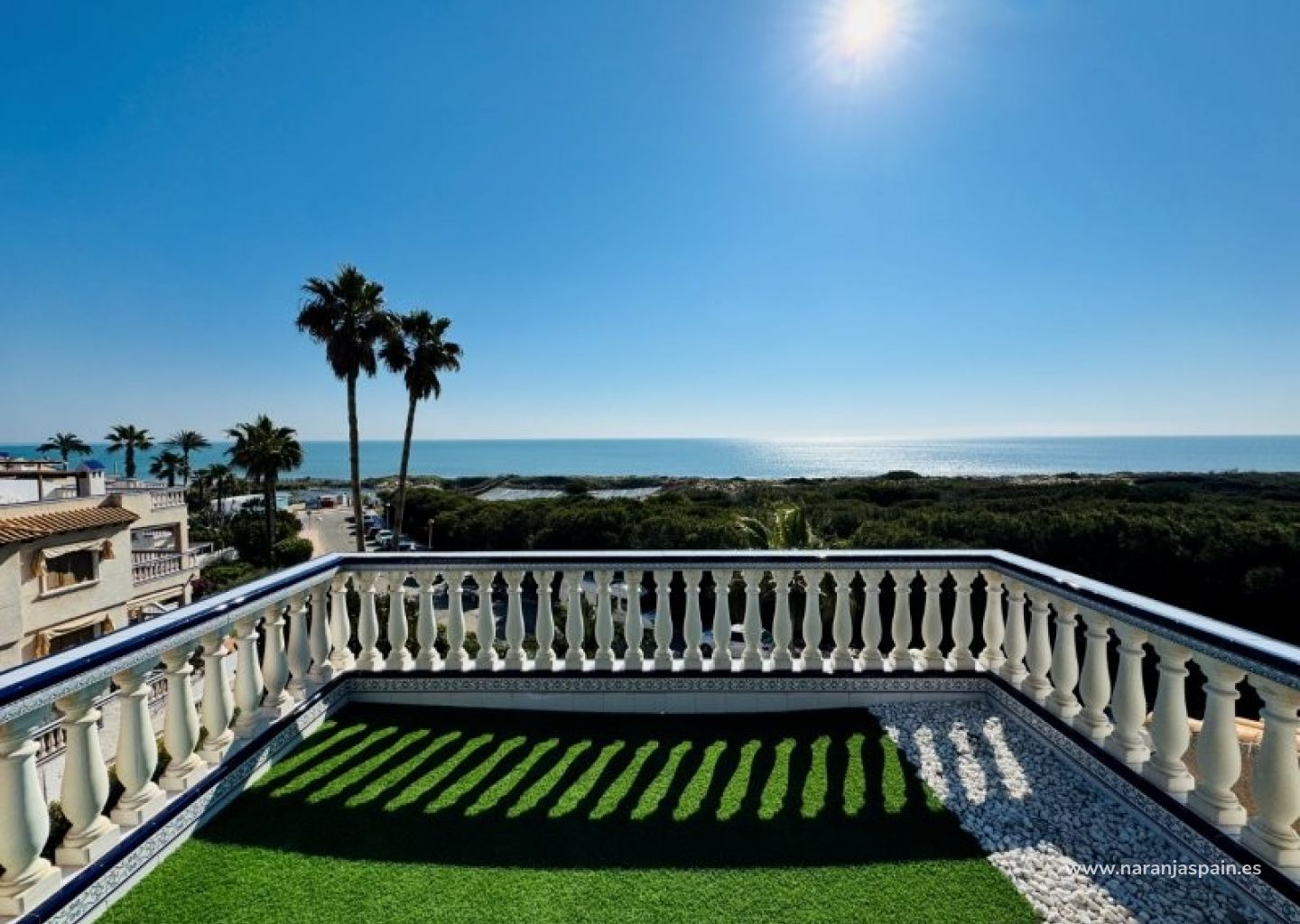 Spektakularny, odnowiony dwupoziomowy apartament na sprzedaż, położony tuż przy plaży, w ekskluzywnej dzielnicy Campo Mar w Guardamar del Segura. Na powierzchni 121 metrów kwadratowych, rozłożonych na dwóch piętrach, posiada dwie przestronne sypialnie, dwie łazienki i dwa tarasy, po jednym na każdym piętrze. Nieruchomość oferuje niezrównane widoki na morze w uprzywilejowanej okolicy. Wyjątkowa okazja, by zamieszkać przy plaży, w jednej z najlepszych dzielnic na wybrzeżu!