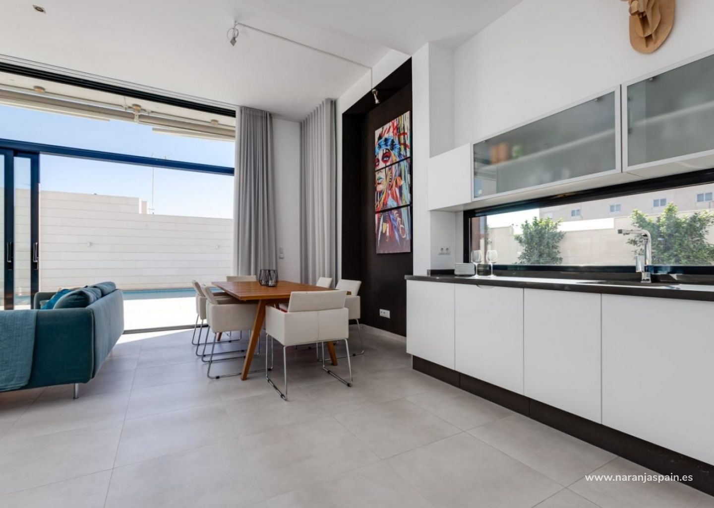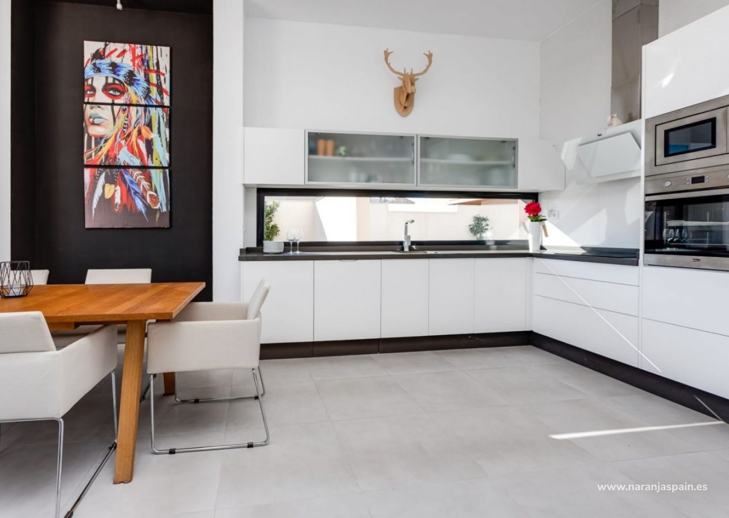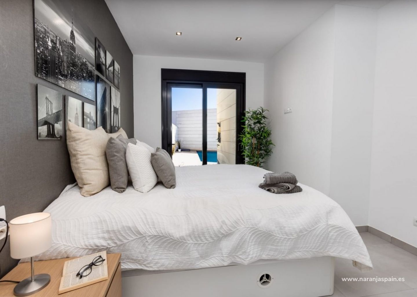 NYBYGGDA VILLOR I PILAR DE LA HORADADA Nybyggnation av 6 fristående villor i Pilar de la Horadada. Nybyggda villor på en nivå har 3 sovrum, 2 badrum, öppet kök med vardagsrum, inbyggda garderober, privat trädgård med parkeringsplats. Ett alternativ för ett solarium och en privat pool mot en extra kostnad. Dessa fantastiska hus är täckta med natursten för minimalt underhåll, vardagsrummets dubbla höjd och stora fönster ger mycket naturligt ljus. Pilar de la Horadada är den sydligaste staden och kommunen på Costa Blanca i provinsen Alicante. Staden ligger på gränsen mellan Comunidad Valenciana och regionen Murcia. Pilar de la Horadada är en typisk spansk stad som ligger bara 2 km från kusten och de populära stränderna i Torre de la Horadada. I Pilar de la Horadadas centrum finns alla bekvämligheter: affärer, konditorier, banker etc. längs huvudgatan "Calle Mayor". Du kommer också att uppleva en underbar atmosfär nära den lokala kyrkan på "Plaza de la Iglesia" där det finns flera kaféer. I Pilar de la Horadada finns också ett välutvecklat nät av cykel- och vandringsleder, och det finns också ett stort utbud av olika sportaktiviteter. Lo Romero 18-håls golfbana ligger bara en kort bilresa från staden. Flygplatserna Corvera (Murcia) och Alicante ligger 40 respektive 55 minuter bort.