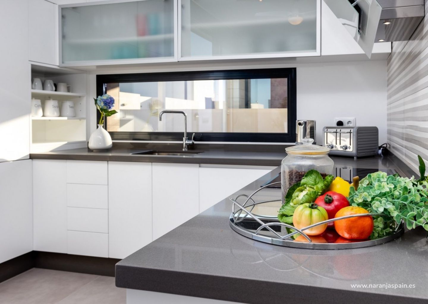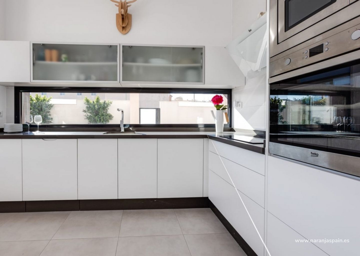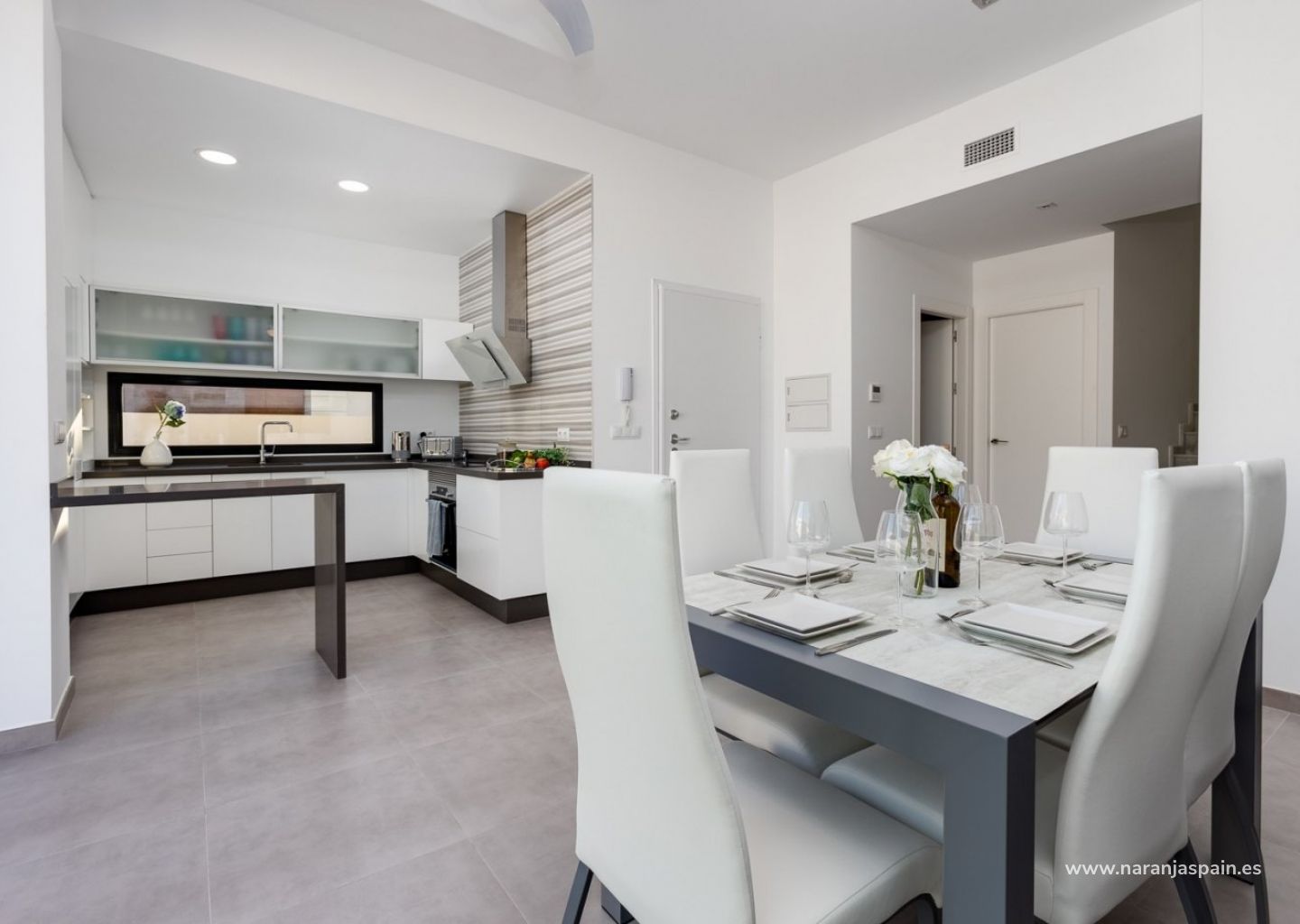 NYBYGGDA VILLOR I PILAR DE LA HORADADA Nybyggnation av 6 fristående villor i Pilar de la Horadada. Nybyggda villor på en nivå har 3 sovrum, 2 badrum, öppet kök med vardagsrum, inbyggda garderober, privat trädgård med parkeringsplats. Ett alternativ för ett solarium och en privat pool mot en extra kostnad. Dessa fantastiska hus är täckta med natursten för minimalt underhåll, vardagsrummets dubbla höjd och stora fönster ger mycket naturligt ljus. Pilar de la Horadada är den sydligaste staden och kommunen på Costa Blanca i provinsen Alicante. Staden ligger på gränsen mellan Comunidad Valenciana och regionen Murcia. Pilar de la Horadada är en typisk spansk stad som ligger bara 2 km från kusten och de populära stränderna i Torre de la Horadada. I Pilar de la Horadadas centrum finns alla bekvämligheter: affärer, konditorier, banker etc. längs huvudgatan "Calle Mayor". Du kommer också att uppleva en underbar atmosfär nära den lokala kyrkan på "Plaza de la Iglesia" där det finns flera kaféer. I Pilar de la Horadada finns också ett välutvecklat nät av cykel- och vandringsleder, och det finns också ett stort utbud av olika sportaktiviteter. Lo Romero 18-håls golfbana ligger bara en kort bilresa från staden. Flygplatserna Corvera (Murcia) och Alicante ligger 40 respektive 55 minuter bort.
