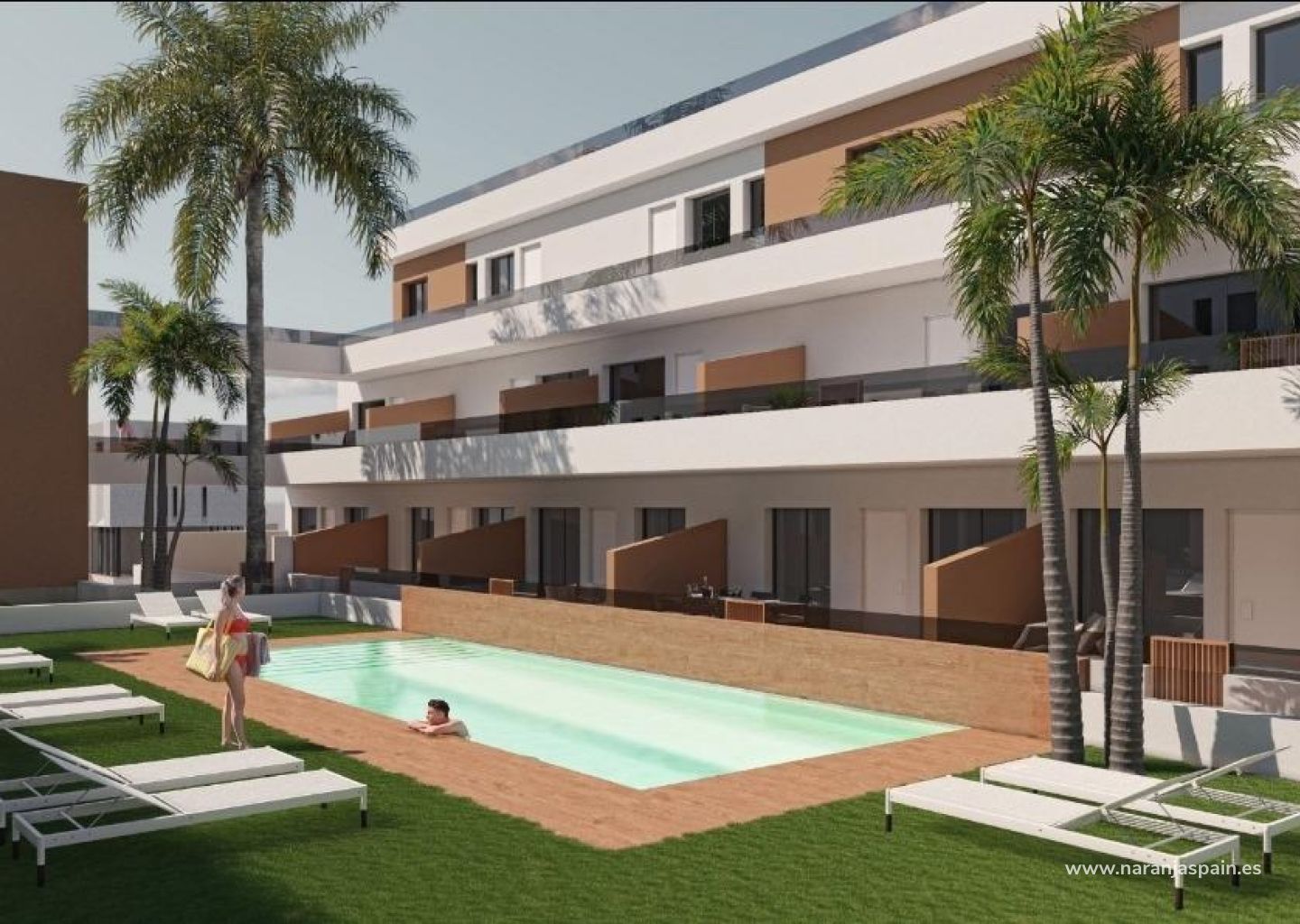 NYBYGGT BOSTADSOMRÅDE I PILAR DE LA HORADADA Nybyggt bostadsområde med lägenheter och takvåningar i Pilar de la Horadada. Lägenheter på bottenvåningen och mellanvåningen med stora terrasser och takvåningar på översta våningen med privata solarium. Moderna fastigheter med 2 och 3 sovrum, 2 badrum, kök med öppen planlösning med rymligt vardagsrum, inbyggda garderober. Varje fastighet har parkeringsplats och förråd. Allt till hands så att du kan njuta av ett utmärkt läge. Pilar de la Horadada är en typisk spansk by i den sydligaste delen av Costa Blanca. Den stora huvudgatan har stormarknader, massor av butiker, restauranger och barer och några härliga torg. De vackra stränderna Torre de la Horadada och Mil Palmeras med strandpromenad med fin sand ligger bara 5 minuter bort. Flygplatserna i Corvera (Murcia) och Alicante ligger 40 respektive 55 minuter bort.