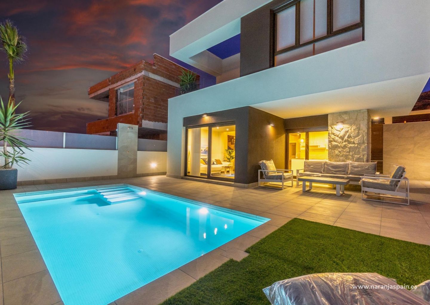 Villor byggda över 2 floosr, med 3 sovrum och 3 badrum, kök med öppen planlösning med vardagsrumsdelen, inbyggda garderober, terrass, privat trädgård med pool och parkeringsplats.