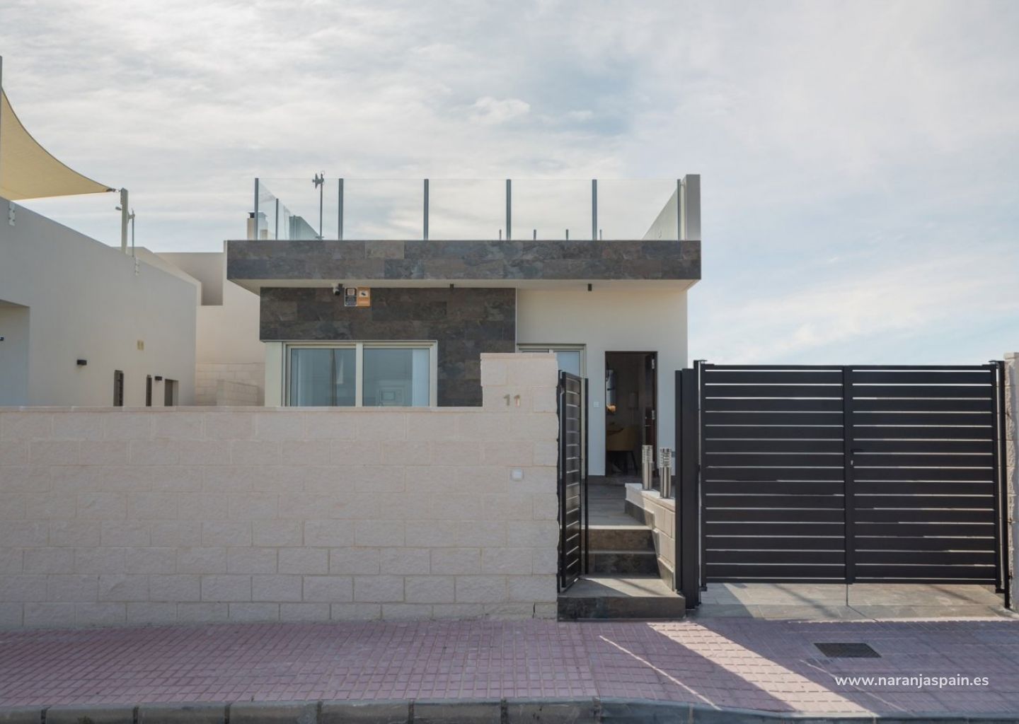 SAMTIDIG VILLA VID GOLFBANAN Modern villa belägen intill den exklusiva golfbanan Villamartín, mot sydost. Den består av 3 dubbelrum (alla med inbyggda garderober), 3 badrum (ett med eget badrum), fullt utrustat modernt integrerat kök (med frukostbar), stort öppet vardagsrum / matsal som leder till en inhägnad trädgård med privat pool och parkeringsplats, och ett rymligt solarium på taket. Råkällare ingår i priset. Källaren kan färdigställas mot en extra kostnad. Nära till de charmiga stränderna, vikar och småbåtshamnar i Cabo Roig och Campoamor, nära 3 olika golfbanor. Även tjänster från ett brett utbud av barer och restauranger, levande underhållning och shoppingcenter som La Zenia Boulevard och Los Dolces. Och fördelarna med goda vägförbindelser och Alicantes och Murcias internationella flygplatser.
