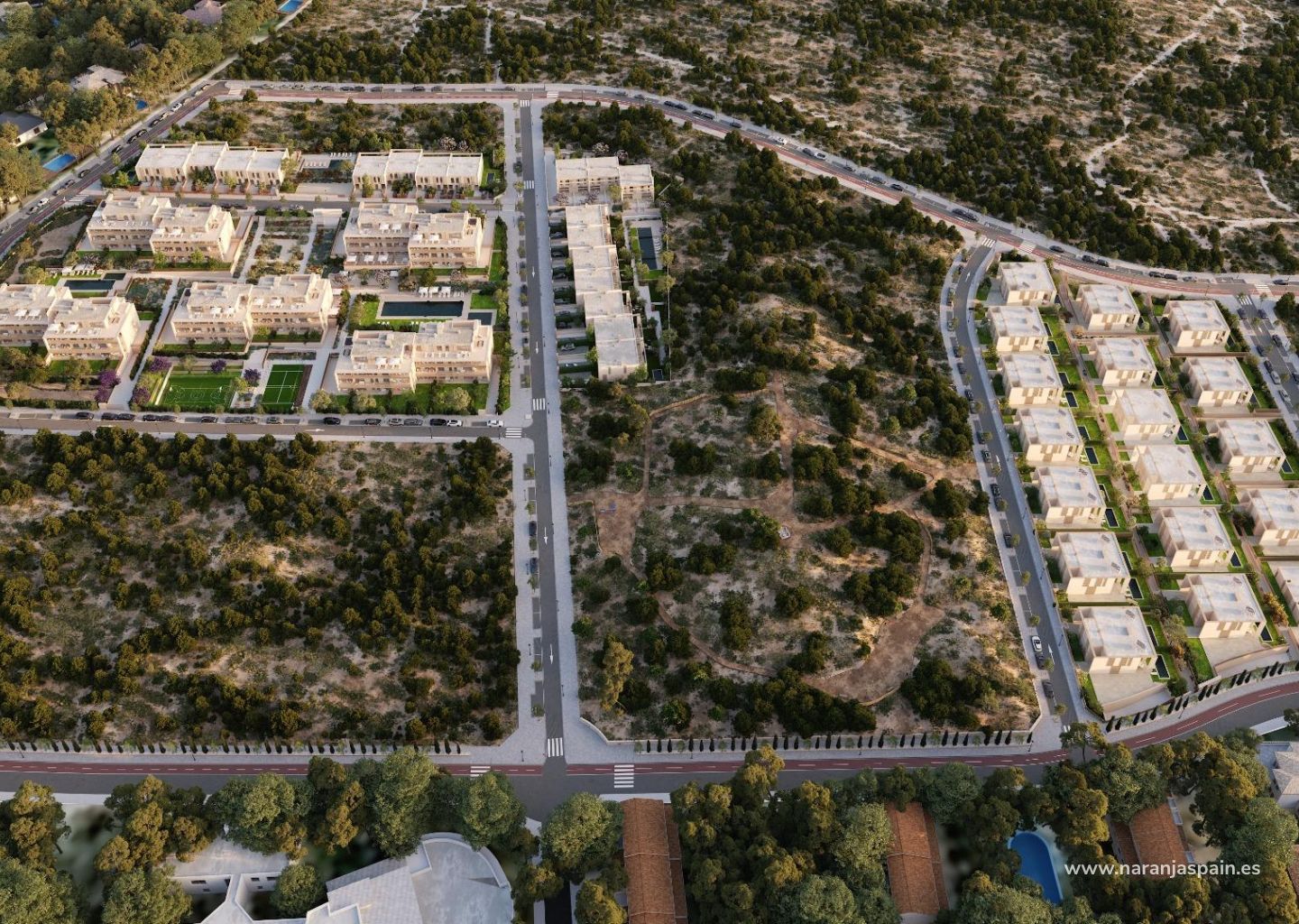 Nybyggt bostadsområde med 36 parhus med 4 och 5 sovrum, med stora privata trädgårdar, källare med källare, förråd och 2 parkeringsplatser.