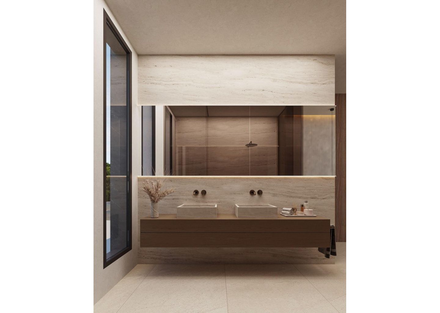 På husets högra sida finns sovdelen med 3 sovrum: master suite med omklädningsrum och badrum och ytterligare två sovrum som delar på ett badrum.