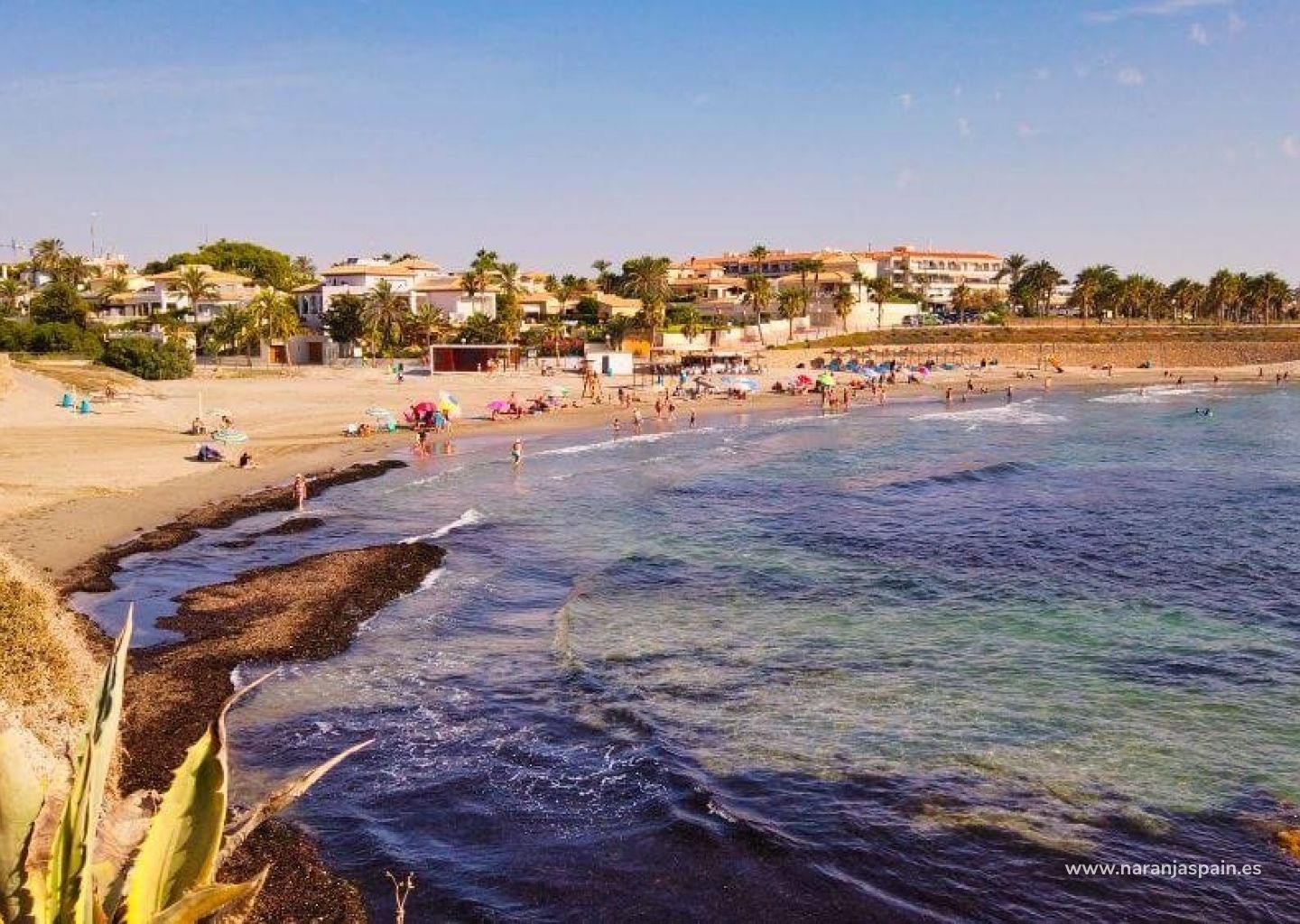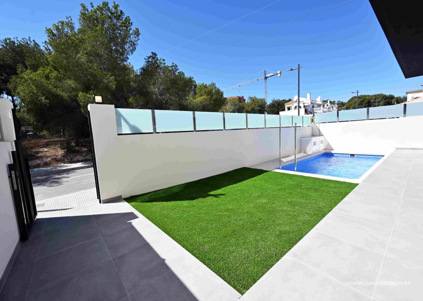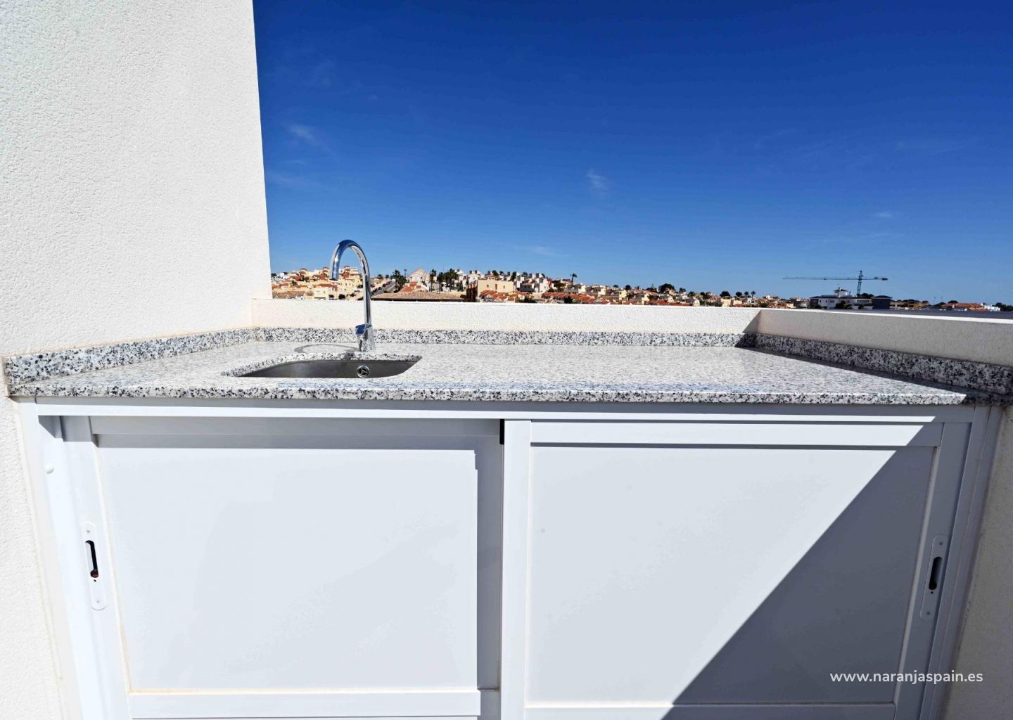 NYBYGGDA RADHUS I ORIHUELA COSTA Nybyggda radhus i Las Filipinas, Orihuela Costa. Komplexet består av 12 radhus, alla med 2/3 sovrum, 2 badrum, för- och bakgård och egen takterrass. På bottenvåningen finns ett ljust vardagsrum med öppet kök, ett rymligt sovrum med inbyggd garderob och ett badrum. På första våningen finns ett andra stort sovrum med inbyggd garderob och ett badrum. Från sovrummet finns en utgång till en solig balkong med plats för terrassmöbler. På övervåningen har du takterrassen där du kan placera ett utekök, jacuzzi och chill-out område. Fastigheterna levereras med förinstallerad kanaliserad luftkonditionering, utrustade badrum, aerotermiskt varmvattensystem, intercom, LED-belysningspaket, utekök och parkeringsplats. Privat pool 5,5 x 2,5 m. Utvecklingen ligger nära tre populära golfbanor (Villamartin, Las Ramblas och Campoamor), bara fem minuter från de bästa stränderna i Orihuela Costa. Inom några minuters promenad hittar du alla tjänster som barer, restauranger och butiker, La Fuente shoppingcenter. Las Filipinas ligger cirka 10 minuter från den berömda Villamartin Plaza & Golf Course där du hittar många barer och restauranger, stormarknad, banker, en taxistation och den lokala busshållplatsen. De gyllene Orihuela Costa-stränderna ligger bara 5 minuters bilresa bort, liksom det nya köpcentret Zenia Boulevard (det största köpcentret i Alicanteprovinsen med Europas största klädbutik Primark). Det finns 3 andra golfbanor som alla ligger inom 5 minuters bilresa. Det finns tennisbanor och tennisundervisning på det närliggande Campoamor-hotellet. Flygplatserna Alicante och Murcia ligger 45 minuters bilresa bort.
