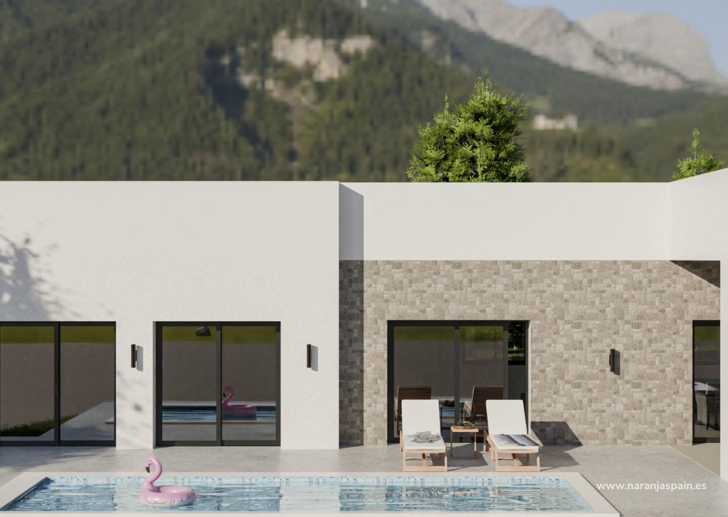 NYBYGGDA VILLOR I PINOSO Nybyggda oberoende moderna villor som kan byggas på rustika eller urbana tomter vi har ett brett utbud tillgängligt i området Pinoso: - 3 sovrum, 2 badrum, 2 gästtoaletter - Privat pool - Full installation av luftkonditionering - Fullt utrustat kök - Stort urval av kvalitetsmaterial - El och vatten från elnätet - 4 solpaneler ingår - AA energimärkning - 15.658 m² tomt i Pinoso - 3.000 m² inhägnad tomt för enkelt underhåll - Motoriserad skjutgrind På de rustika tomterna kommer ca 3.000 m2 av den totala tomten att inhägnas och husen kommer att levereras med ca 1.000 m2 grus runt huset. Huset har en privat pool och fotovoltaiska solpaneler för elförsörjningen. Det finns flera rustika tomter att välja mellan på olika platser, var och en med olika pris (i de priser som publiceras i denna annons har en tomt med ett värde av 40.000 eur beaktats, om köparen väljer en annan tomt kommer det slutliga priset att räknas om i enlighet därmed). Leveranstiden är 8 månader från beviljandet av bygglovet. Den förvärvas enligt ett system med egen marknadsföring: köparen gör inbetalningar på priset allteftersom byggherren utför arbetet.