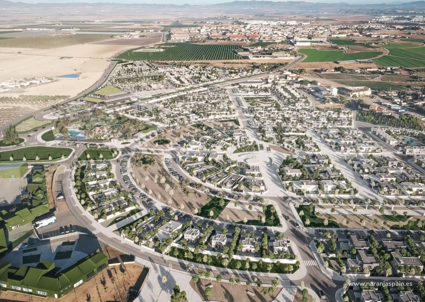 Resorten är omgiven av flera prisbelönta golfbanor, vilket gör den till ett attraktivt alternativ för golfentusiaster. Stränderna i Mar Menor ligger cirka 15 km bort och erbjuder lugnt vatten och ett brett utbud av vattensporter. Murcias internationella flygplats ligger bara 20 km bort, medan Cartagena ligger cirka 30 km och Murcia stad cirka 40 km. Alicantes flygplats ligger cirka 90 km bort. Enkel tillgång till motorvägsnätet möjliggör snabba och bekväma resor i hela regionen.