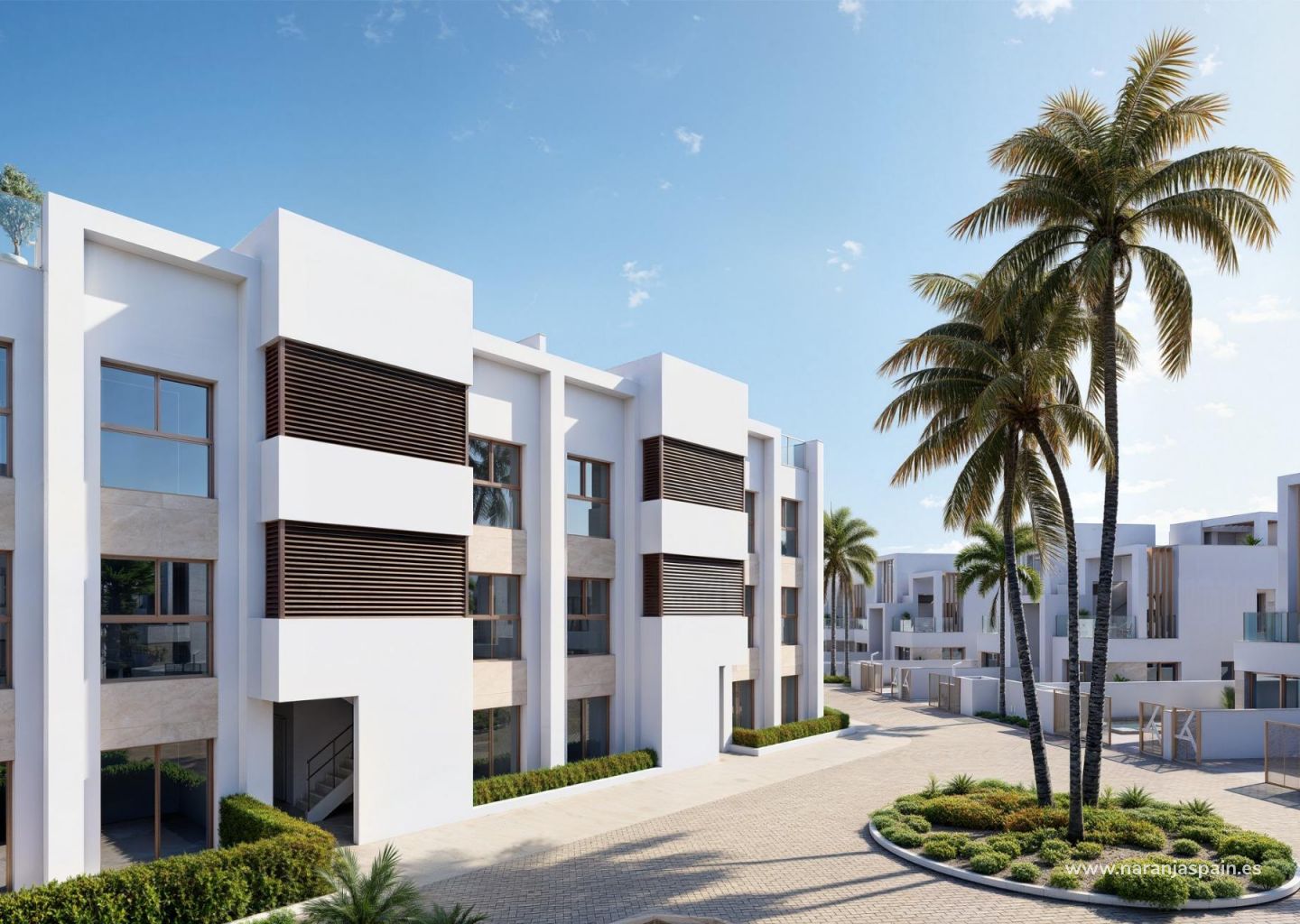 Upptäck denna exklusiva nybyggda semesteranläggning vid La Serena Golf i Los Alcazares. Detta moderna bostadsområde består av 66 eleganta lägenheter med 2 eller 3 sovrum och 2 badrum, varav ett är en suite, utformade för att erbjuda komfort, elegans och en exceptionell medelhavslivsstil bara 300 meter från Mar Menor.